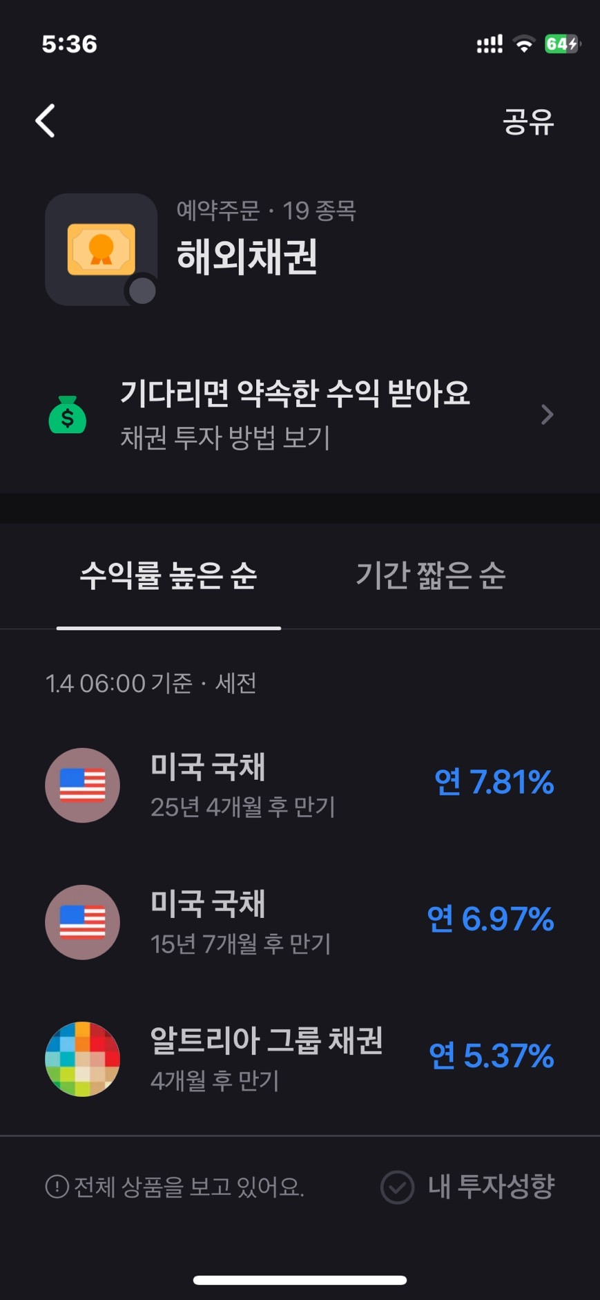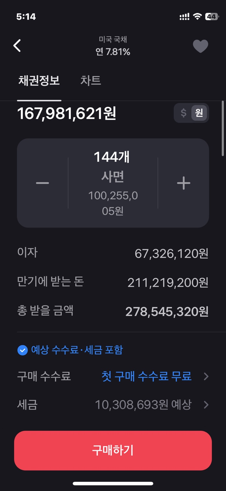 한참을 한국투자에서 미국 국채를 구입하곤 했었다