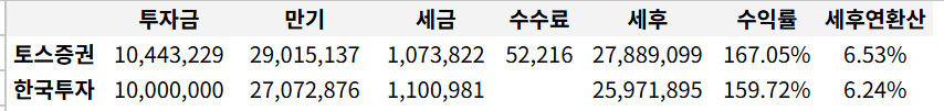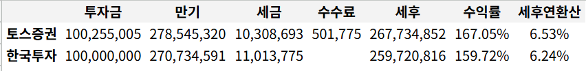 설마 수익률의 보여주는 방식이 다른가 싶었지만 둘다 동일하게 은행환산 세전 수익률이었다