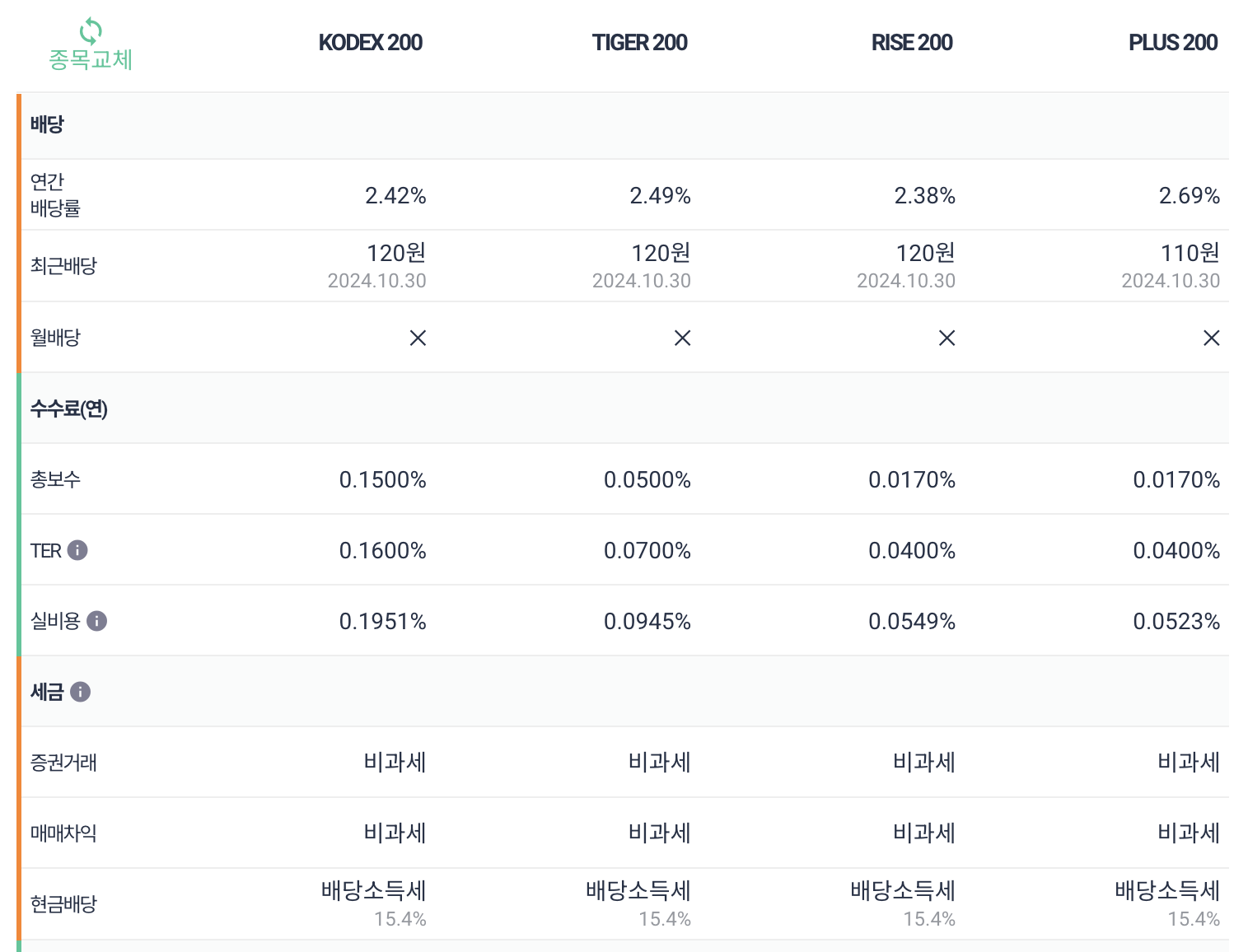 - 일반적으로 코스피200 ETF의 운용 비용이 더 낮은 편입니다.