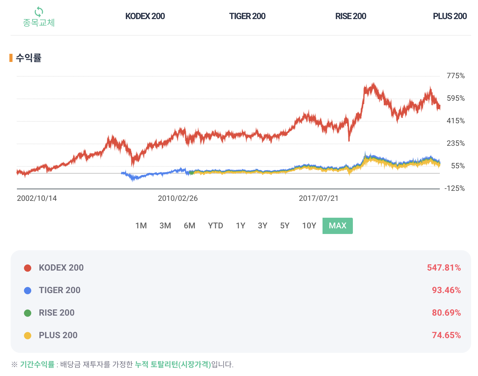 수익률은 KODEX가 확실히 역사가 길지만.. 뭐 이건 의미 없는거 같고