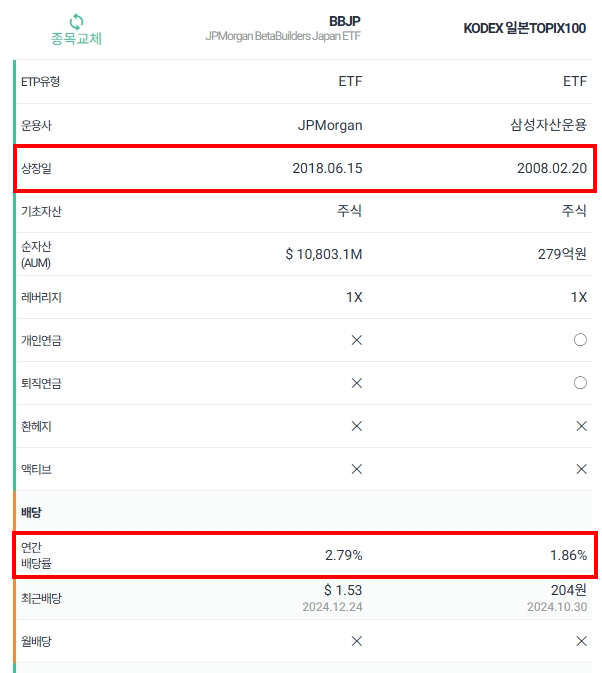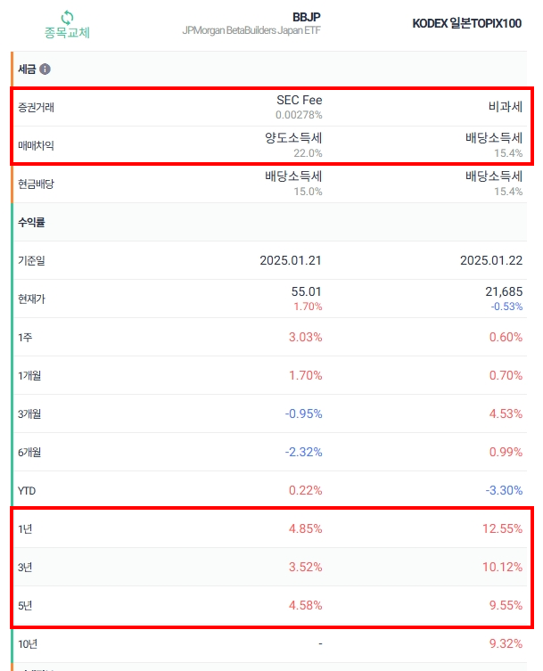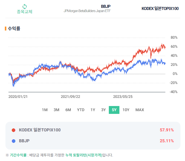 장기 투자의 관점에서 볼 때, BBJP와 같은 미국 상장 ETF가 더 유리할 것으로 보입니다.