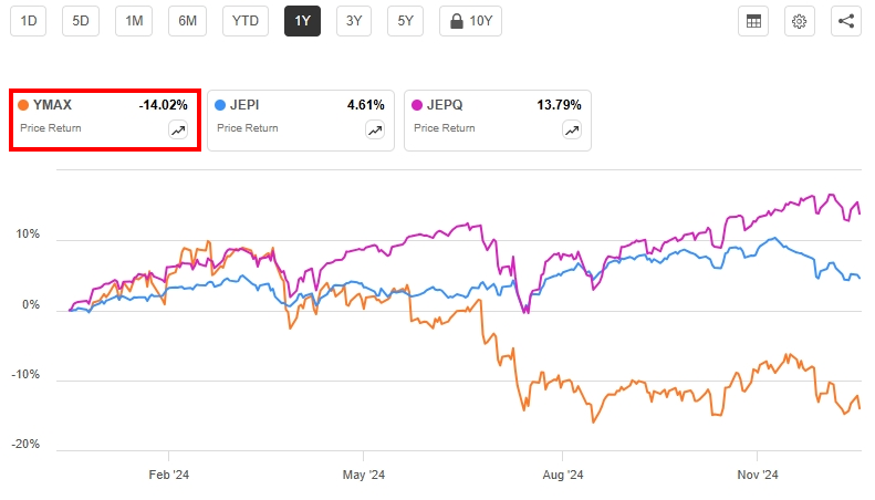 YMAX는 1년 기준으로 -14%가 빠져버린다