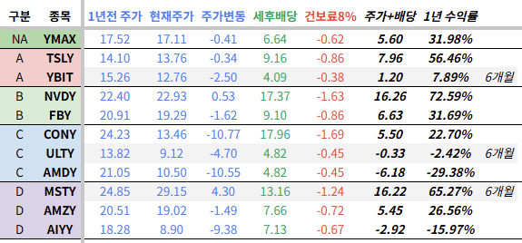 | (배당투자) 1월 3주차 일드맥스 D그룹 MSTY AIYY AMZY 배당 결산 (2) | 2025.01.16 |