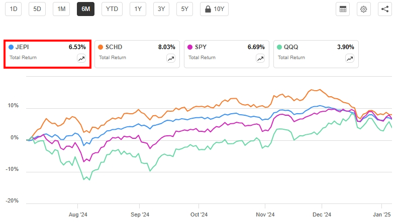 6개월을 보더라도 JEPI가 가슴졸일일은 제일 적을거 같다..