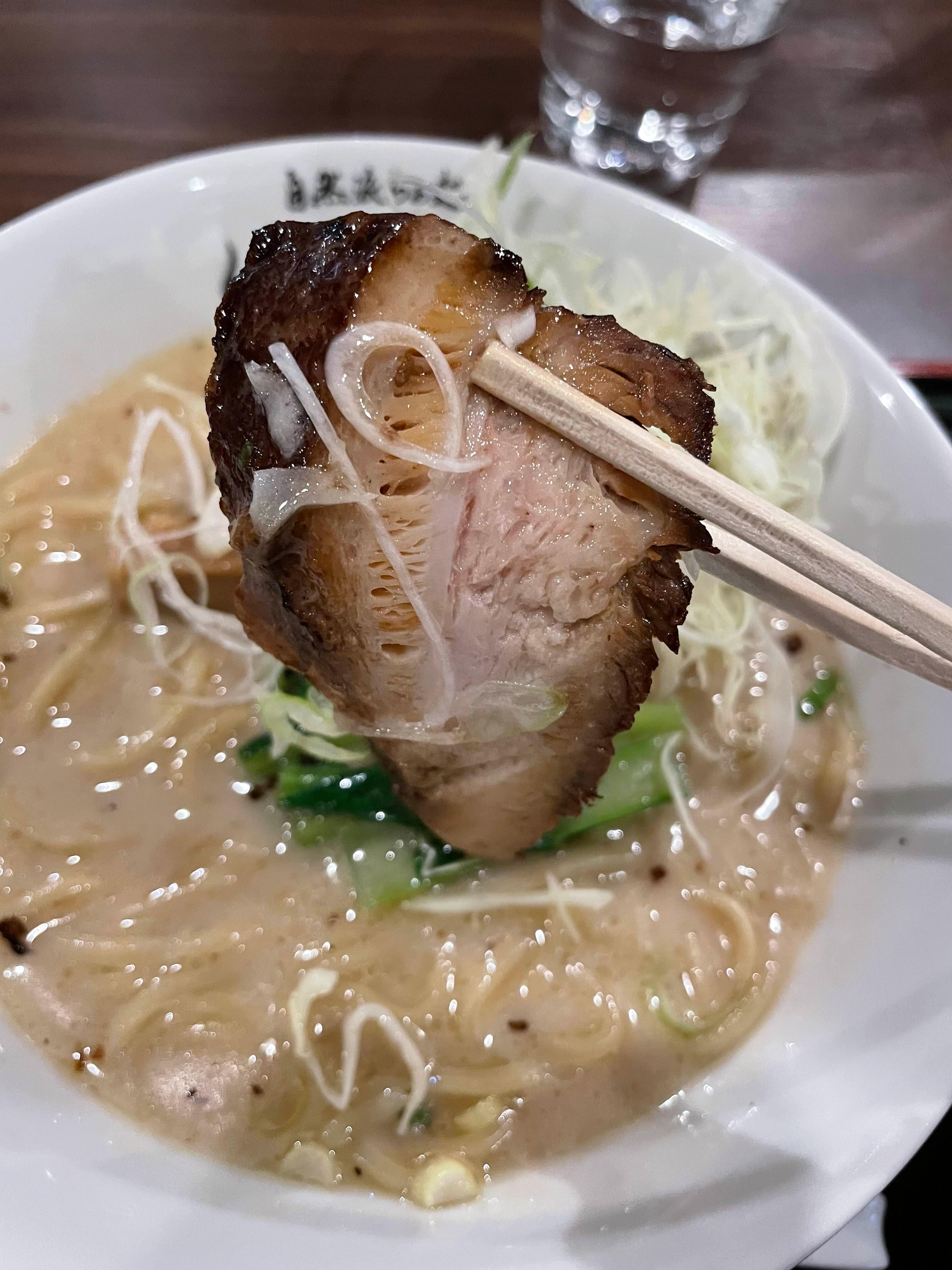 - 3종류의 천연 소금과 해산물 소스가 조화를 이룬 소금 타레(간장 베이스)와 일본식 육수를 균형 있게 결합한 본격적인 백탕 라멘.