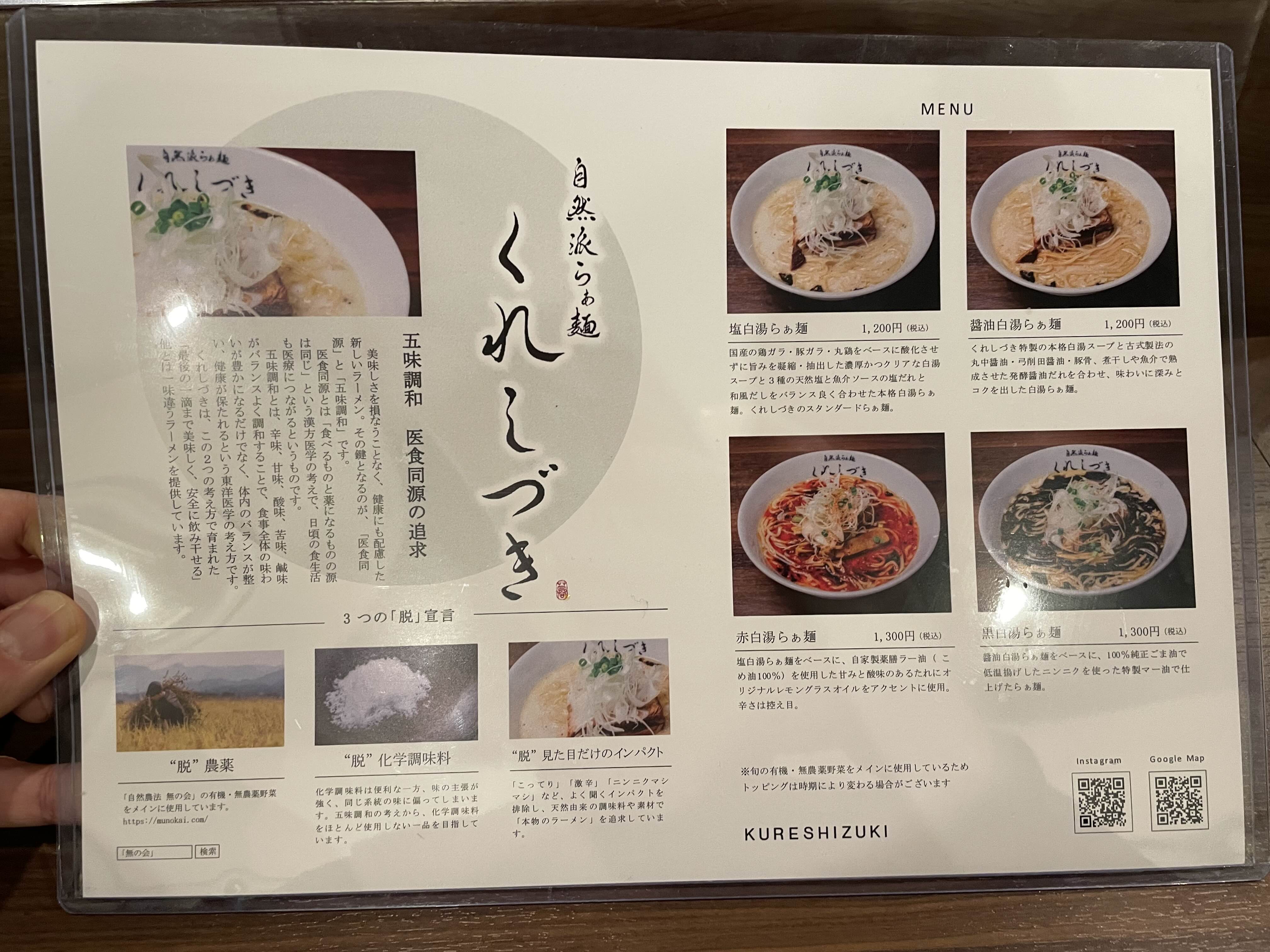 くれしづき는 이 두 가지 철학을 바탕으로 "마지막 한 방울까지 맛있고 안전하게 마실 수 있는", 기존 라멘과는 차별화된 특별한 라멘을 제공합니다.