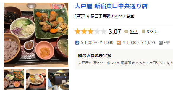 大戸屋 新宿東口中央通り店 (新宿三丁目/食堂)