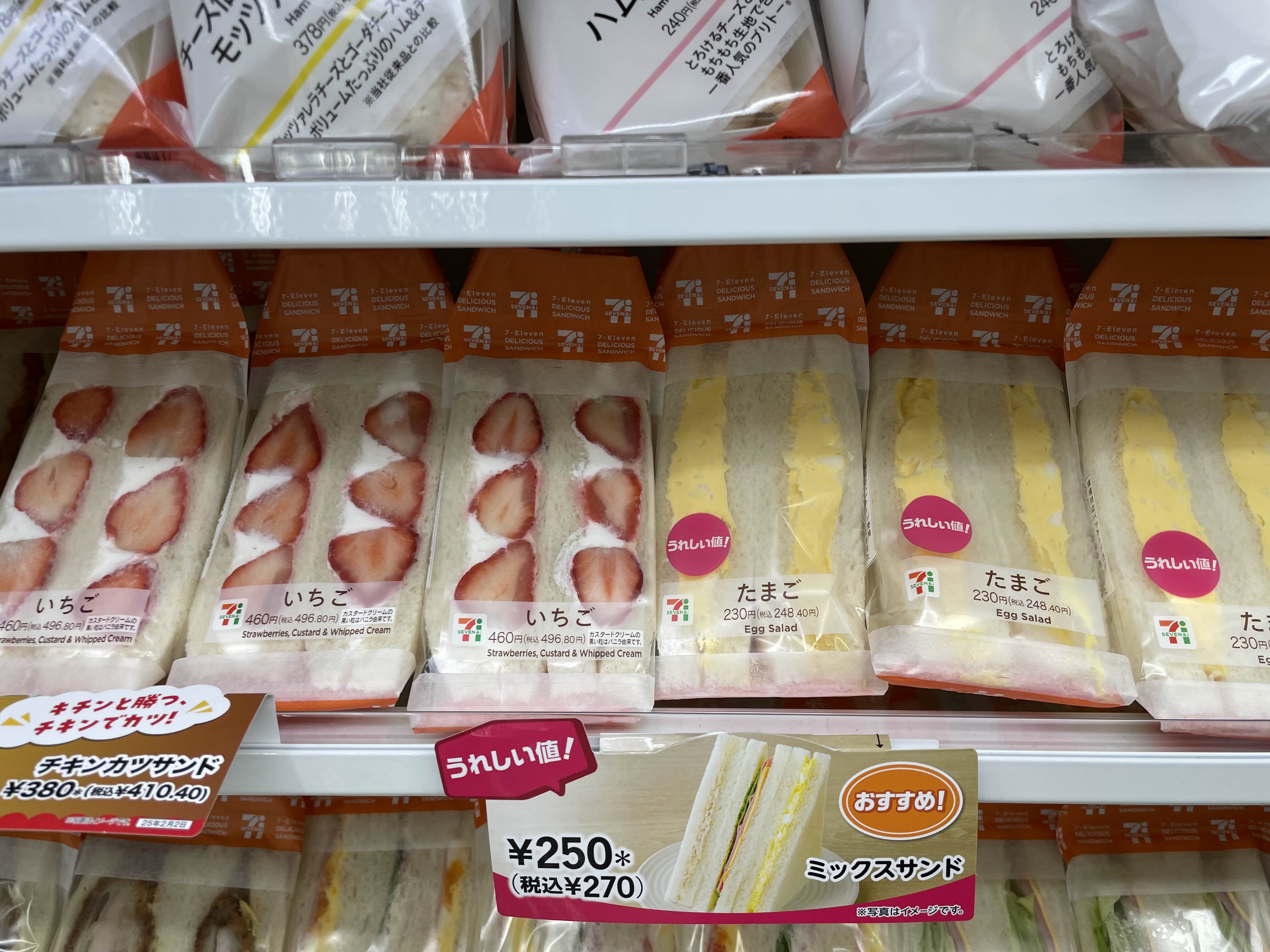 오랜만에 타마고산도랑 딸기산도를 샀는데...