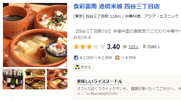 1. 일본 신주쿠 요츠야산초메에 위치한 본격적인 운남 요리 전문점으로, 과교미선(過橋米線)과 기과(汽鍋) 등 운남의 전통 요리를 맛볼 수 있습니다