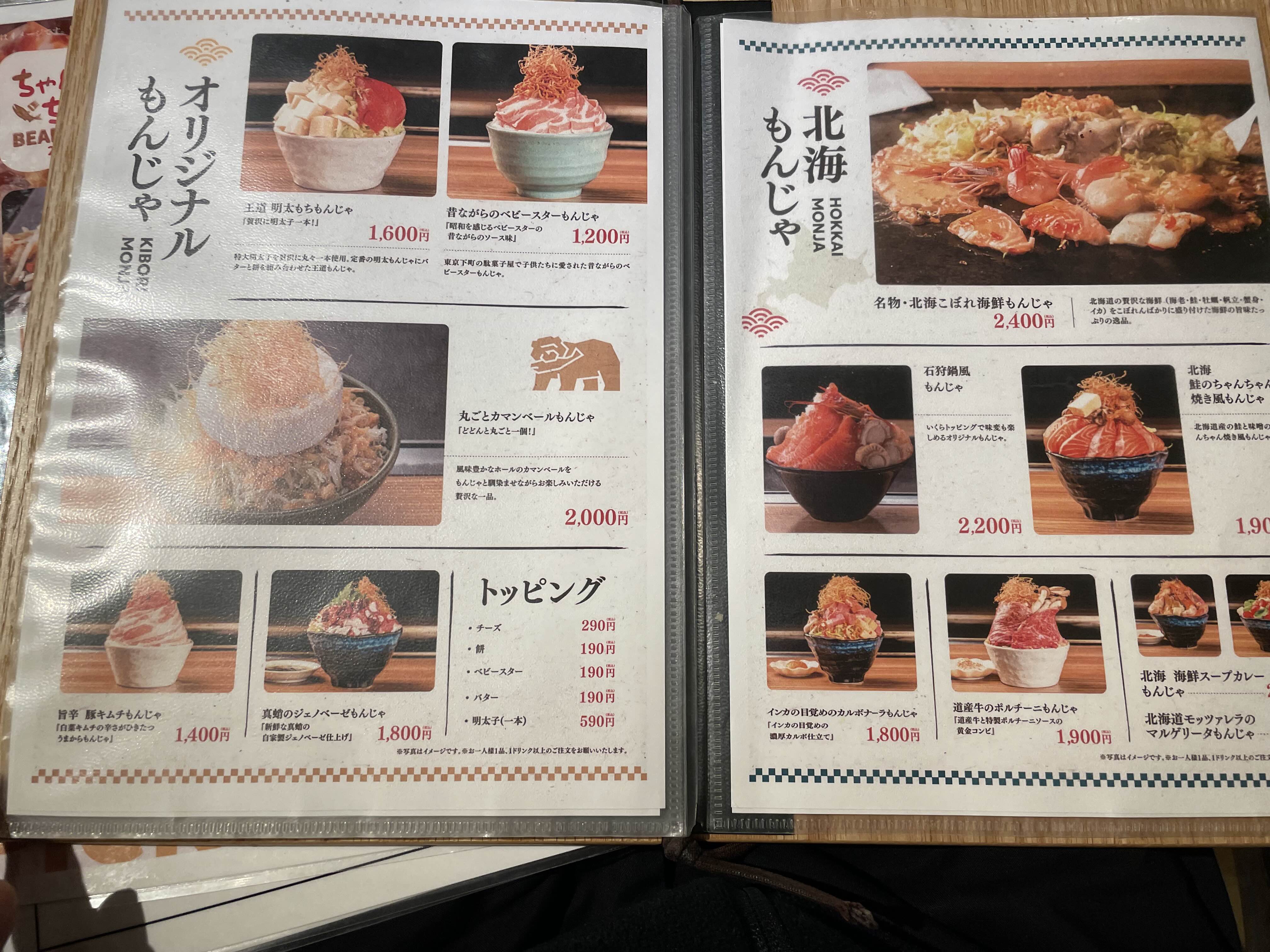 메뉴는 홋카이도 몬자랑 오리지날 몬자가 있었다