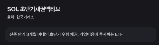 ### 2. SOL 초단기채권액티브 ETF