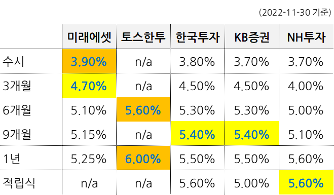 ('22년 11월 30일) 금리 인상기에 가장 안전하고 가장 높은 수익률을 보장하는 증권사 발행어음에