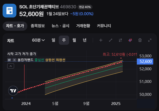 - 높은 기대수익률: SOL 초단기채권액티브 ETF는 연 4.08%~4.2%의 만기 기대수익률(YTM)을 기록하며 CMA보다 높은 수익률을 제공합니다