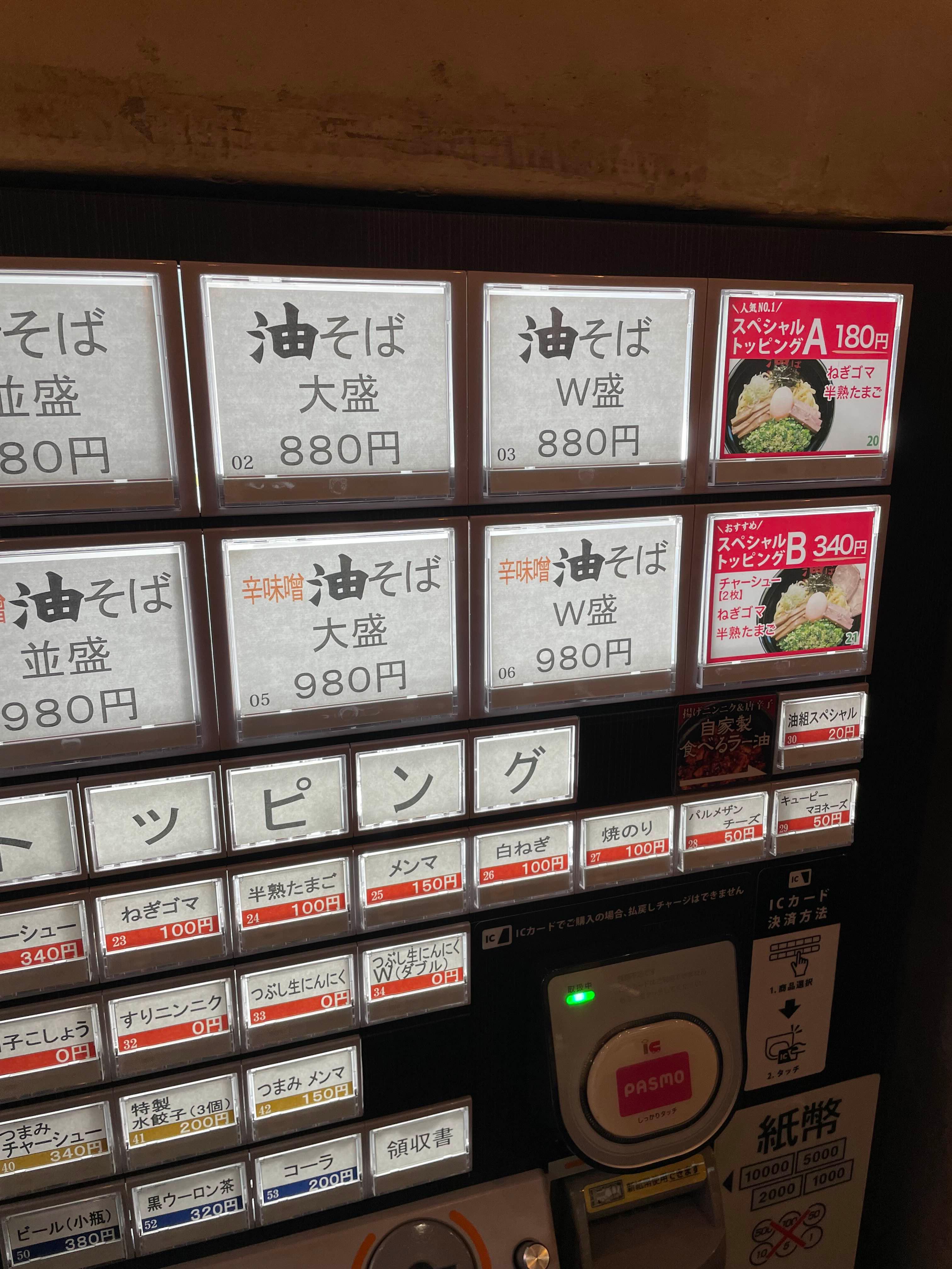 아부라소바 기본은 880엔