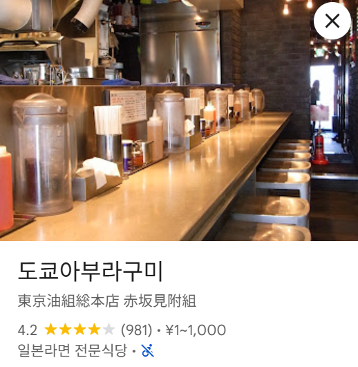 구글 평점 4.2점레 리뷰가 2천개에 육박 ㅎㄷ Ittenbari Ramen & Chahan Restaurant · 일본 〒107-0052 Tokyo, Minato City, Akasaka, 3 Chome−7−9 赤坂一点張ビル 1★★★★☆ · 일본라면 전문식당www.google.com와 타메