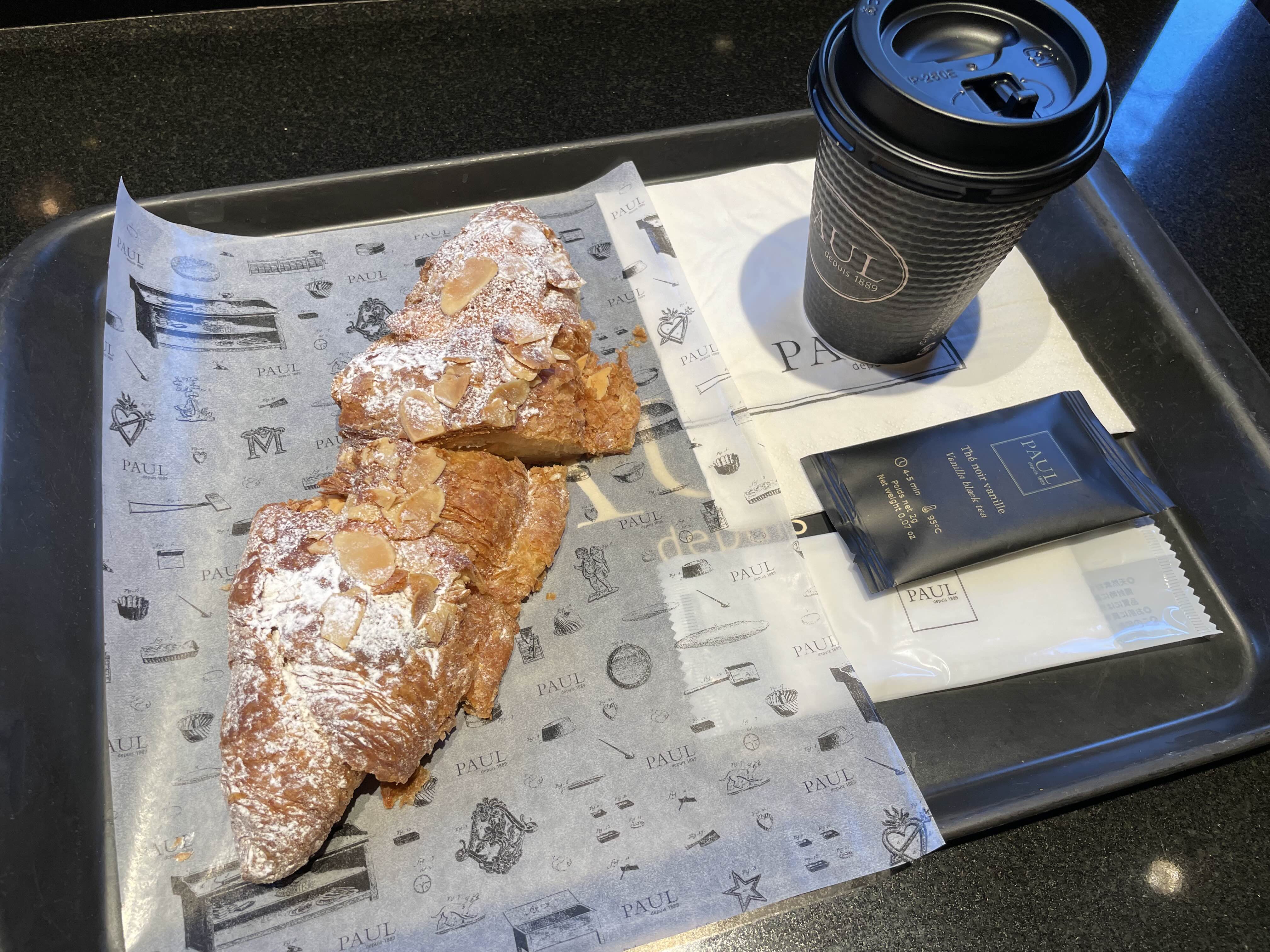 차 한잔이랑 아몬드 크로아상 해서 1,122엔
