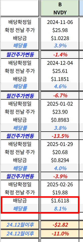 | (배당투자) '25.1월 5주차 일드맥스 B그룹 배당 결산 NVDY YMAX (0) | 2025.01.31 |