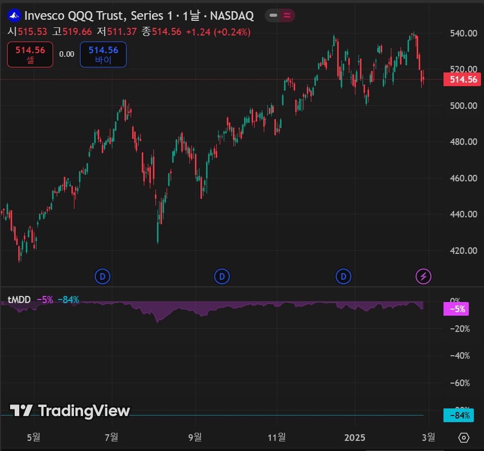 MDD로 보더라도 아직 -5% 수준이라서.. QQQ는 여전히 높은 수준임은 틀림없어보인다