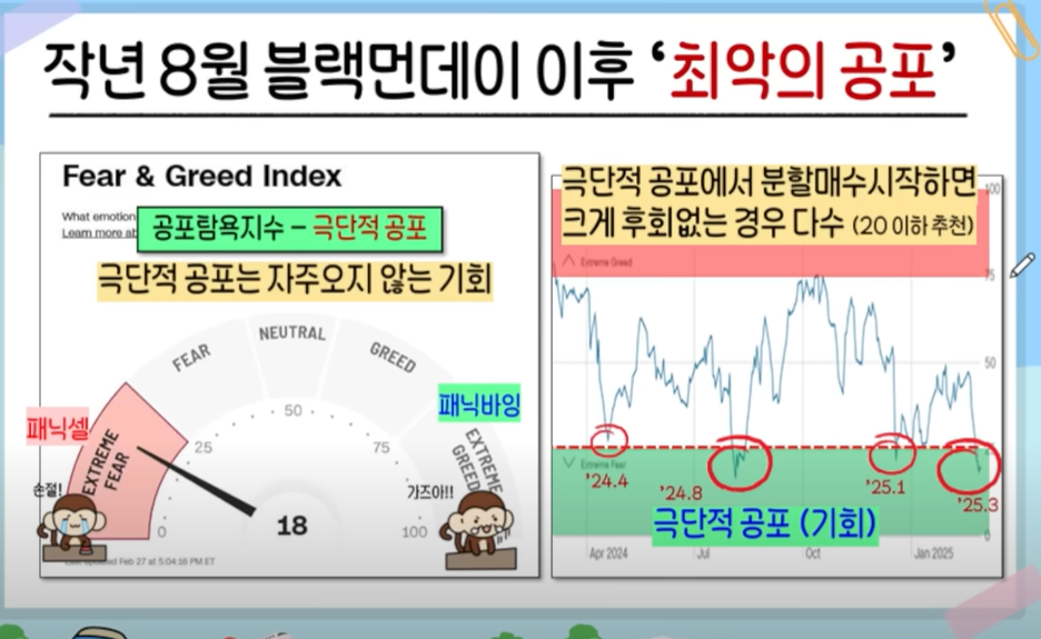 극단 공포 매수 후 승률이 100% 라는데 그렇게 따지면 매수 타이밍이 아닌가 싶기도 하다