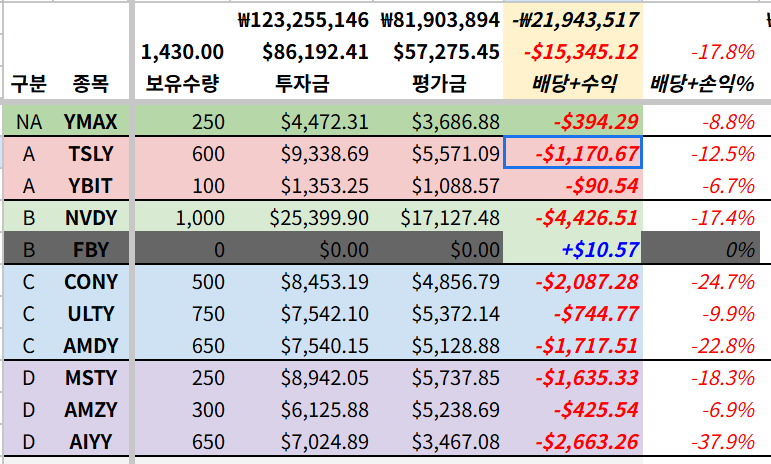 | (배당투자) '25년 2월 3주차 일드맥스 A그룹 TSLY YBIT 결산 (0) | 2025.02.20 |