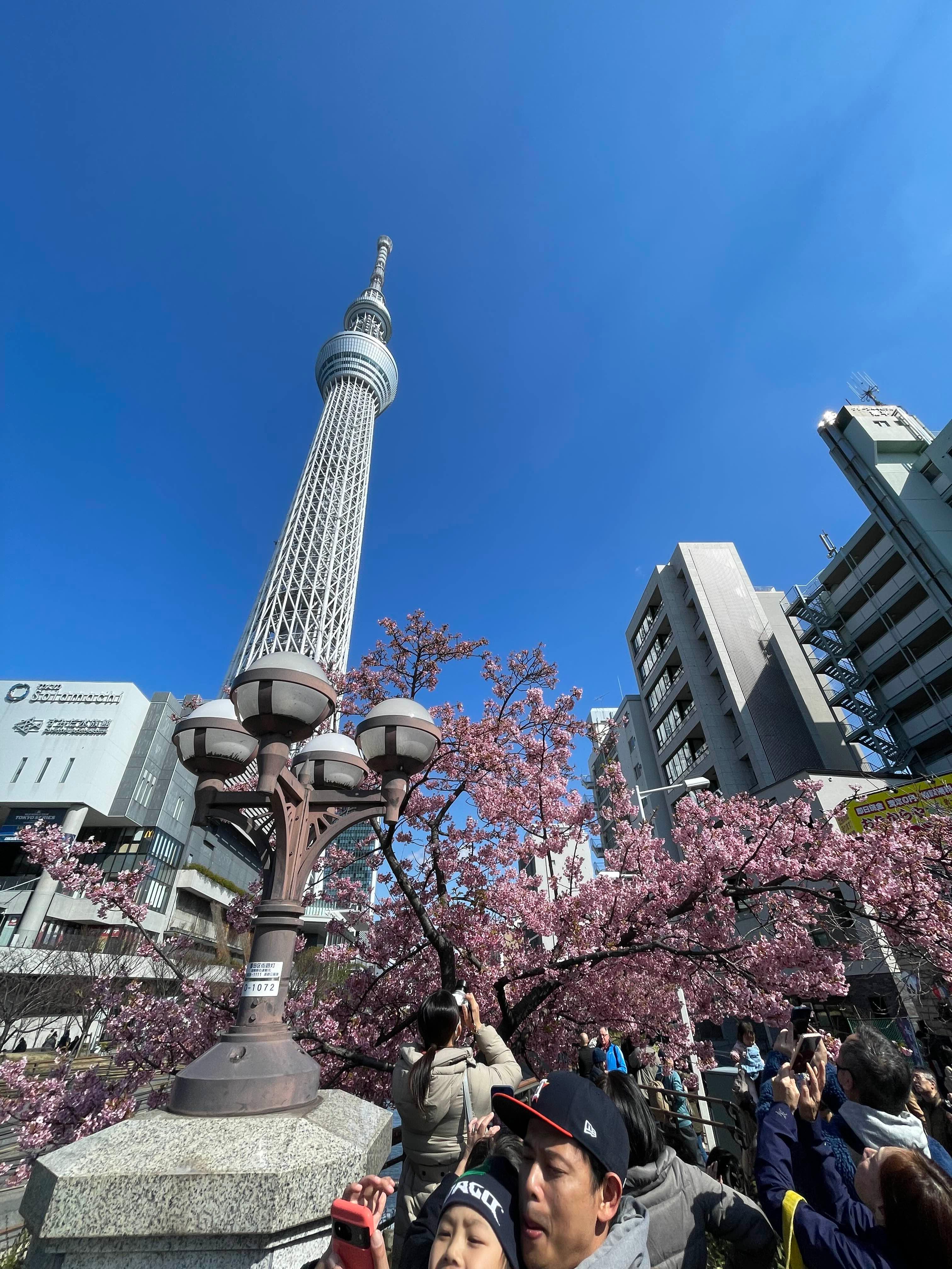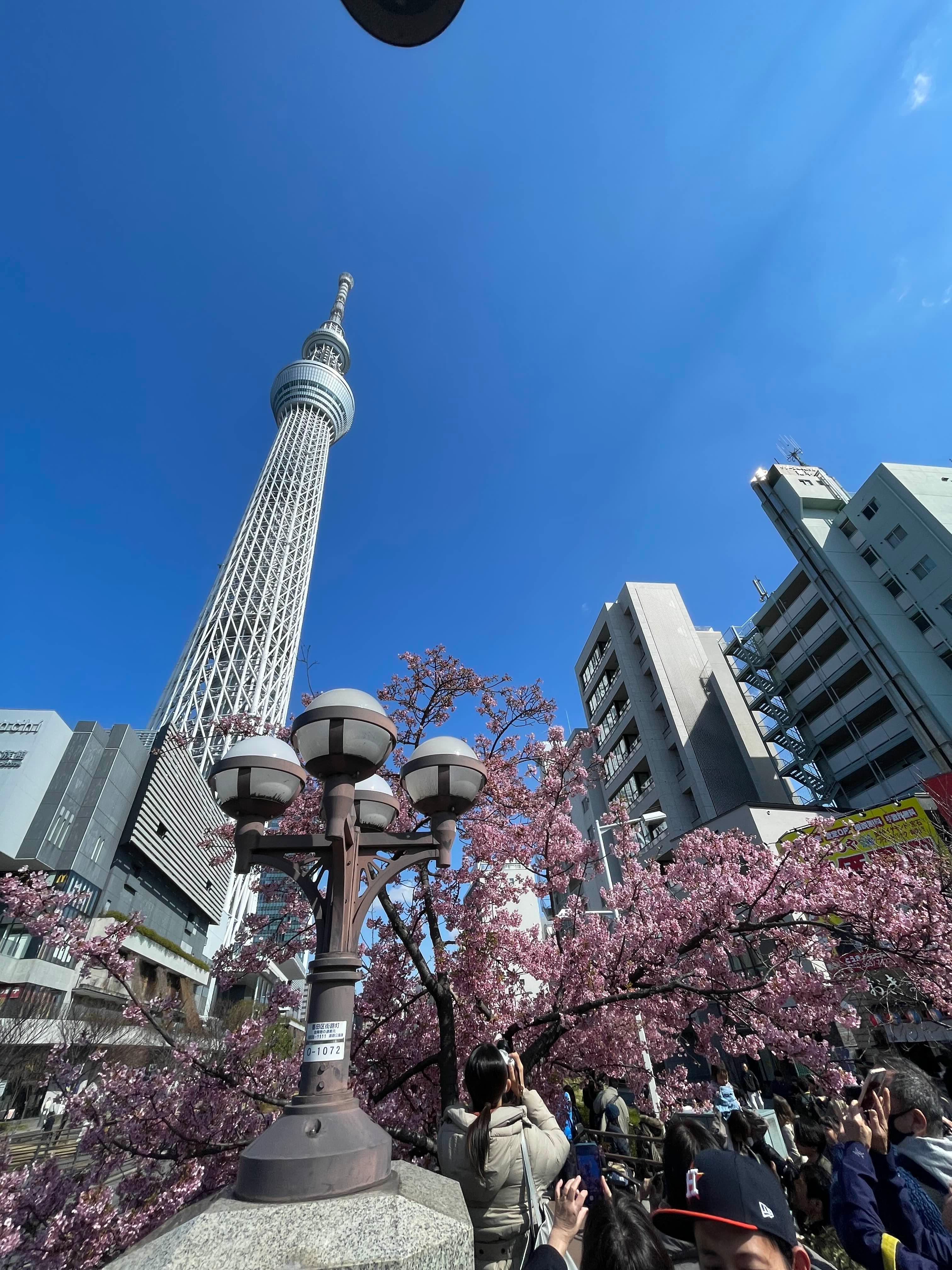 3월인데 스카이트리 앞에 벌써 사쿠라가..