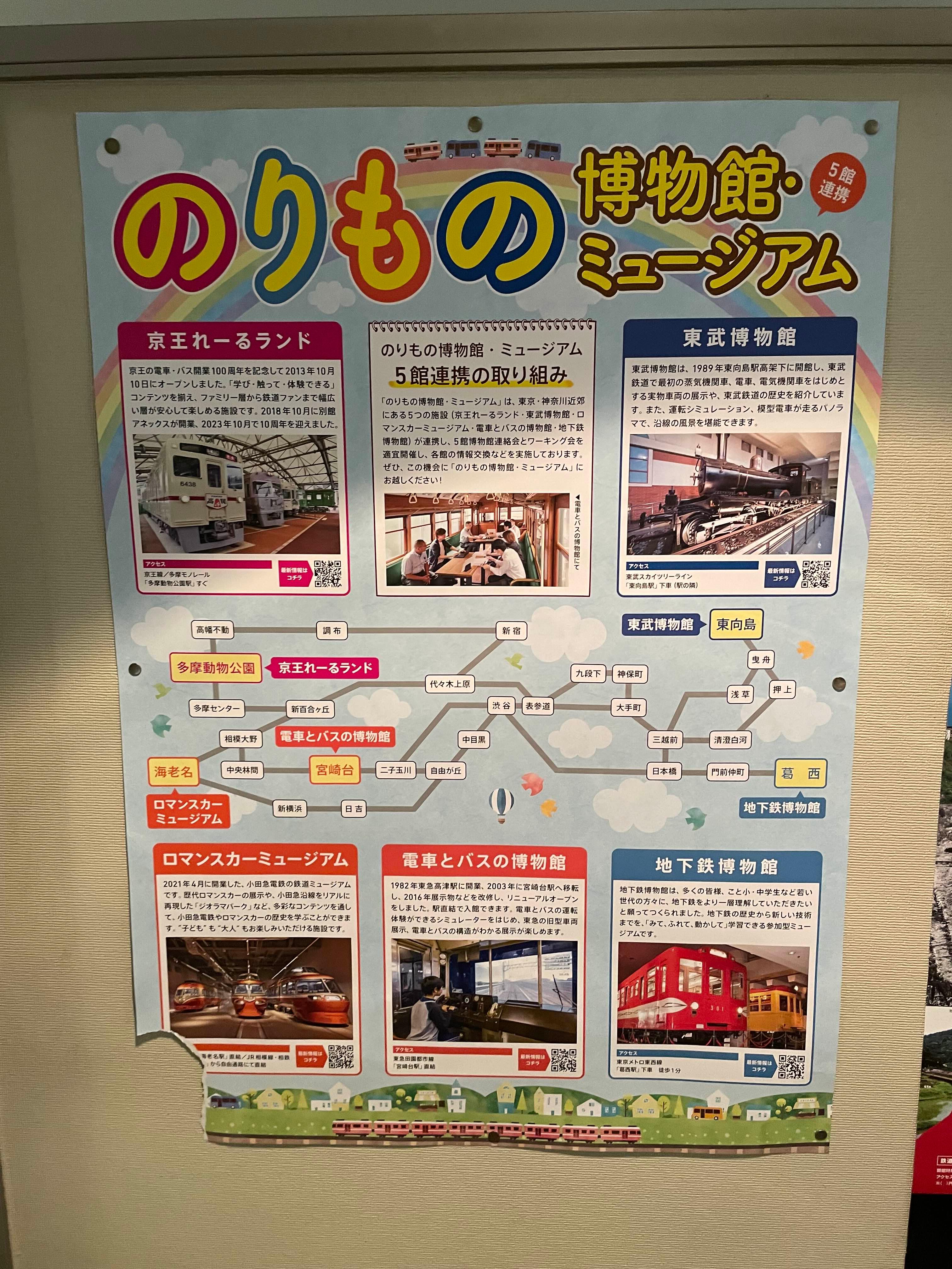 게이오레일랜드 / 도부박물관 / 로맨스카뮤지엄 / 지하철박물관 / 전철과 버스의 박물관 이렇게 5개다