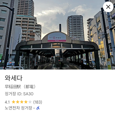 그리고 와세다 종점 도착