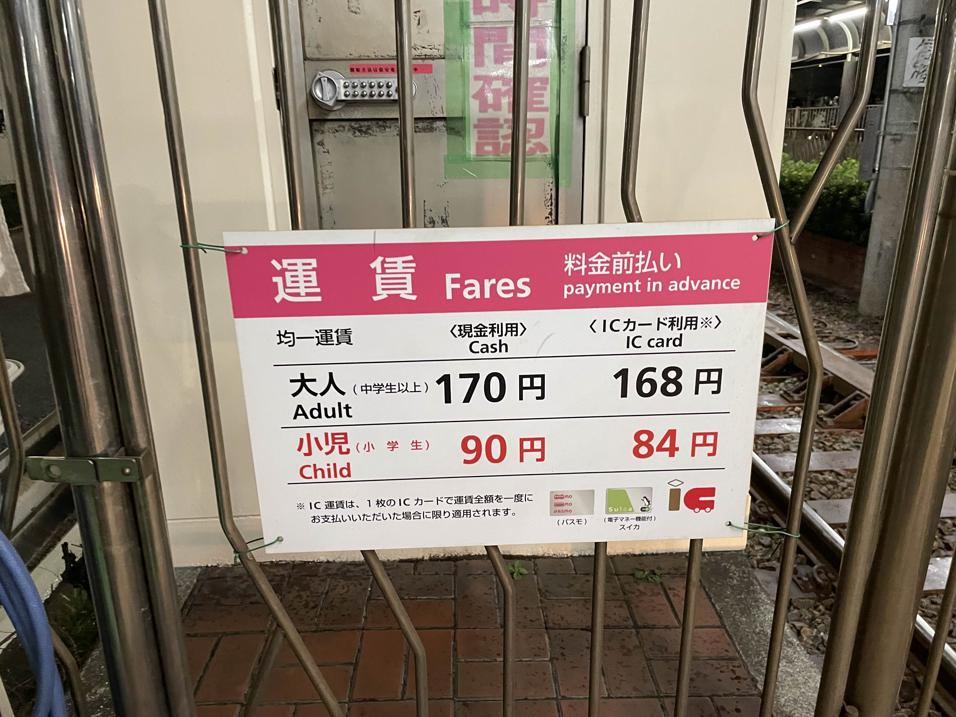 탑승요금은 168엔 나왔다