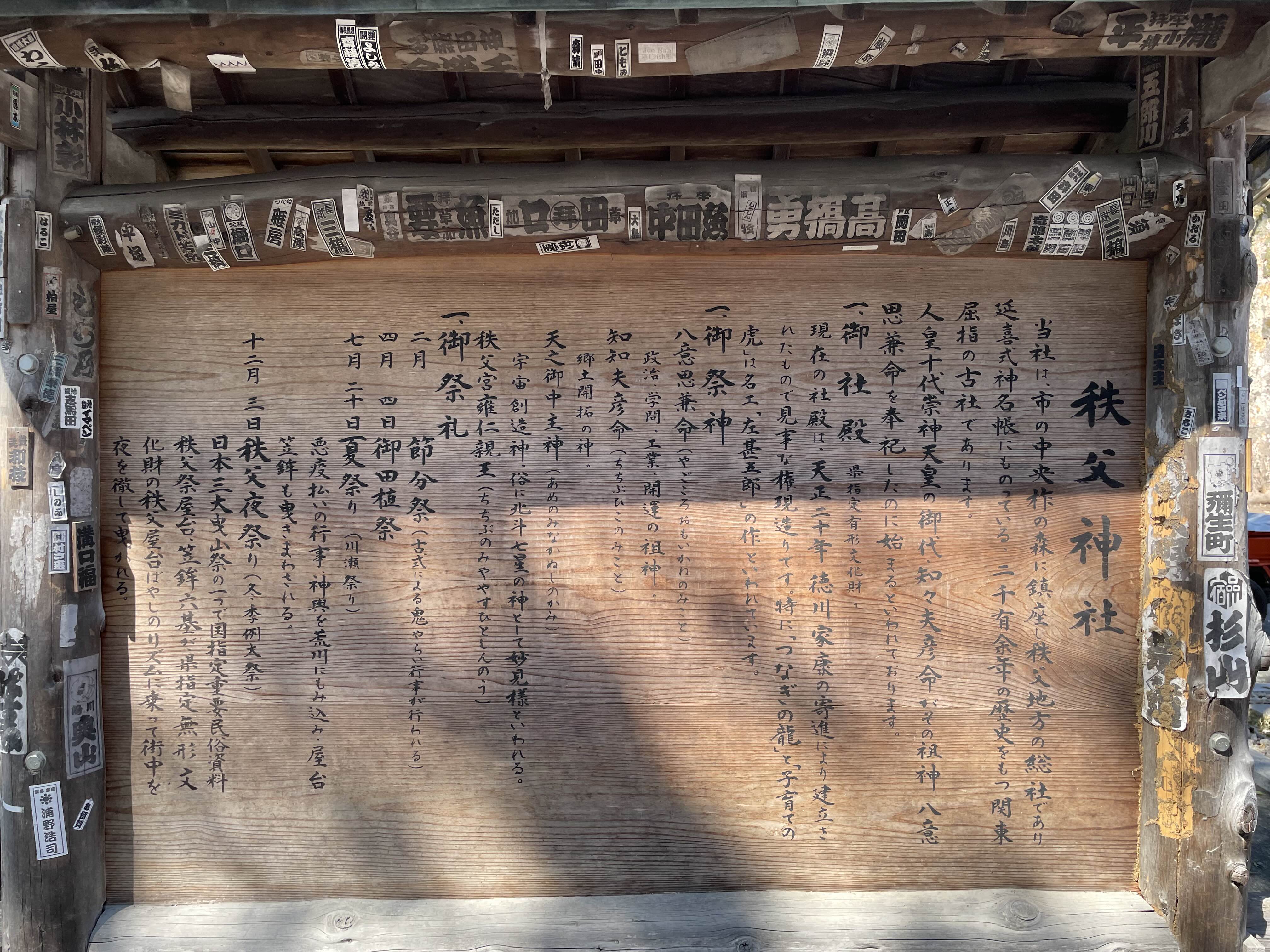 지치부 신사는 치치부 지방의 개척 신을 포함한 네 명의 신을 모시는 관동 지방의 대표적인 고사로, 에도 시대 초기의 건축 양식을 간직한 사이타마현 유형문화재입니다
