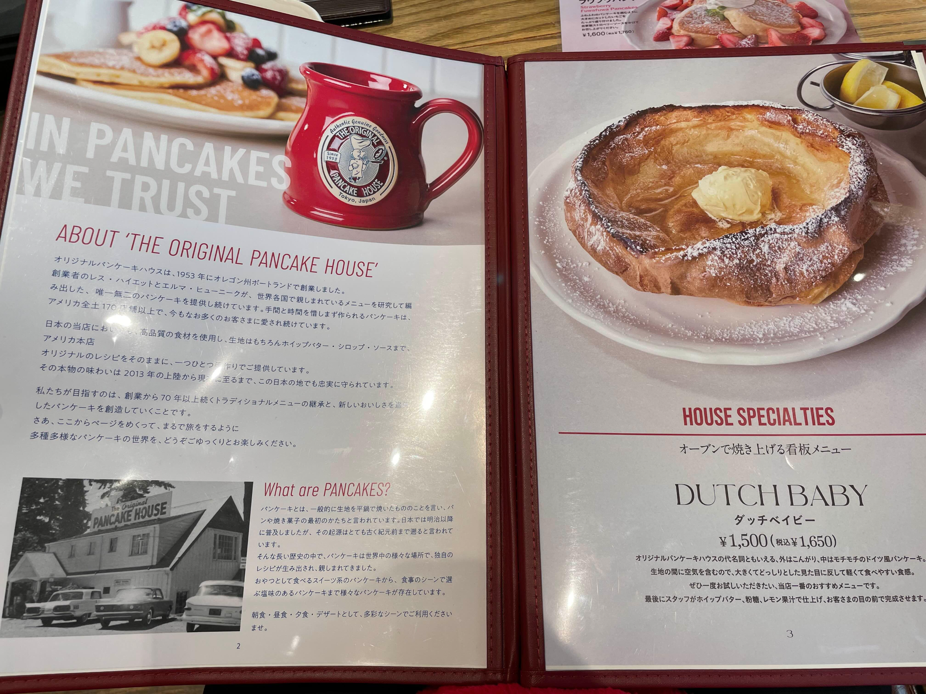 오리지널 팬케이크 하우스의 대표 메뉴 중 하나인 더치 베이비는, 독일식 팬케이크에서 영감을 받은 특별한 요리입니다.
