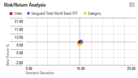 이렇게 보면 지난 10년간 VT가 변동성이 낮은 대신에 수익률도 매우 낮다