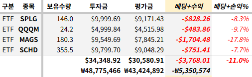 VT SPY QQQ SCHD 4개로만 줄여보니..