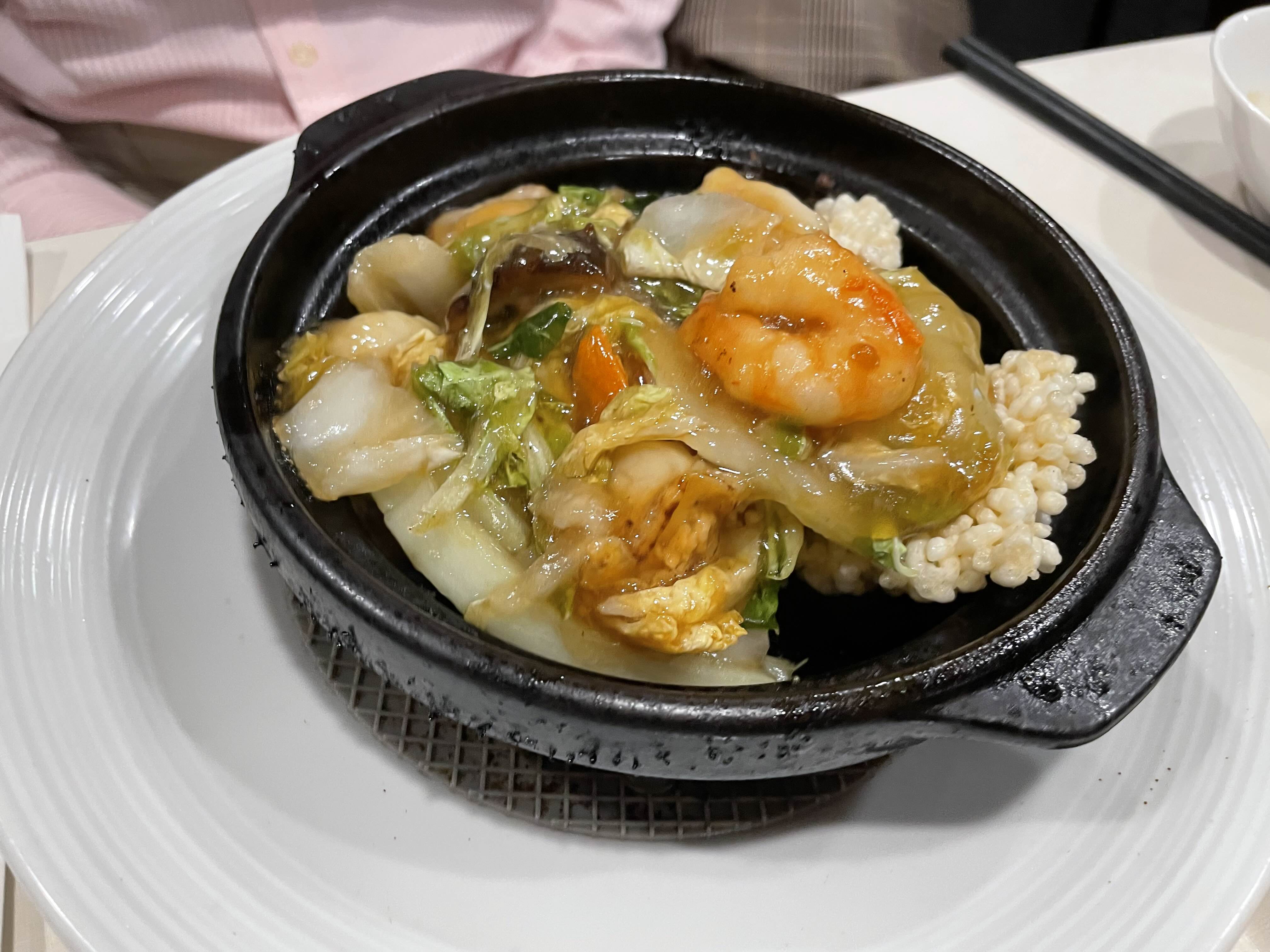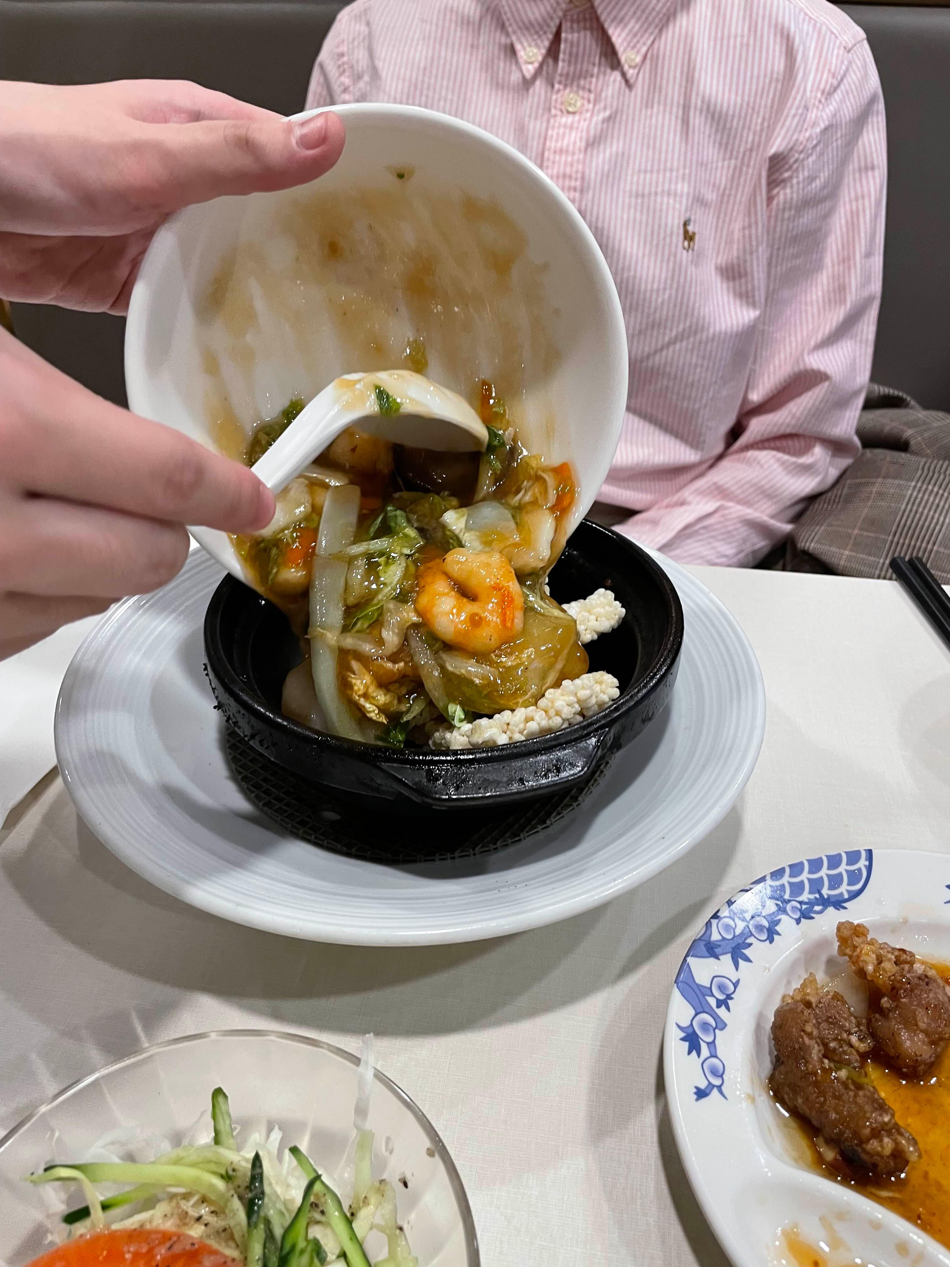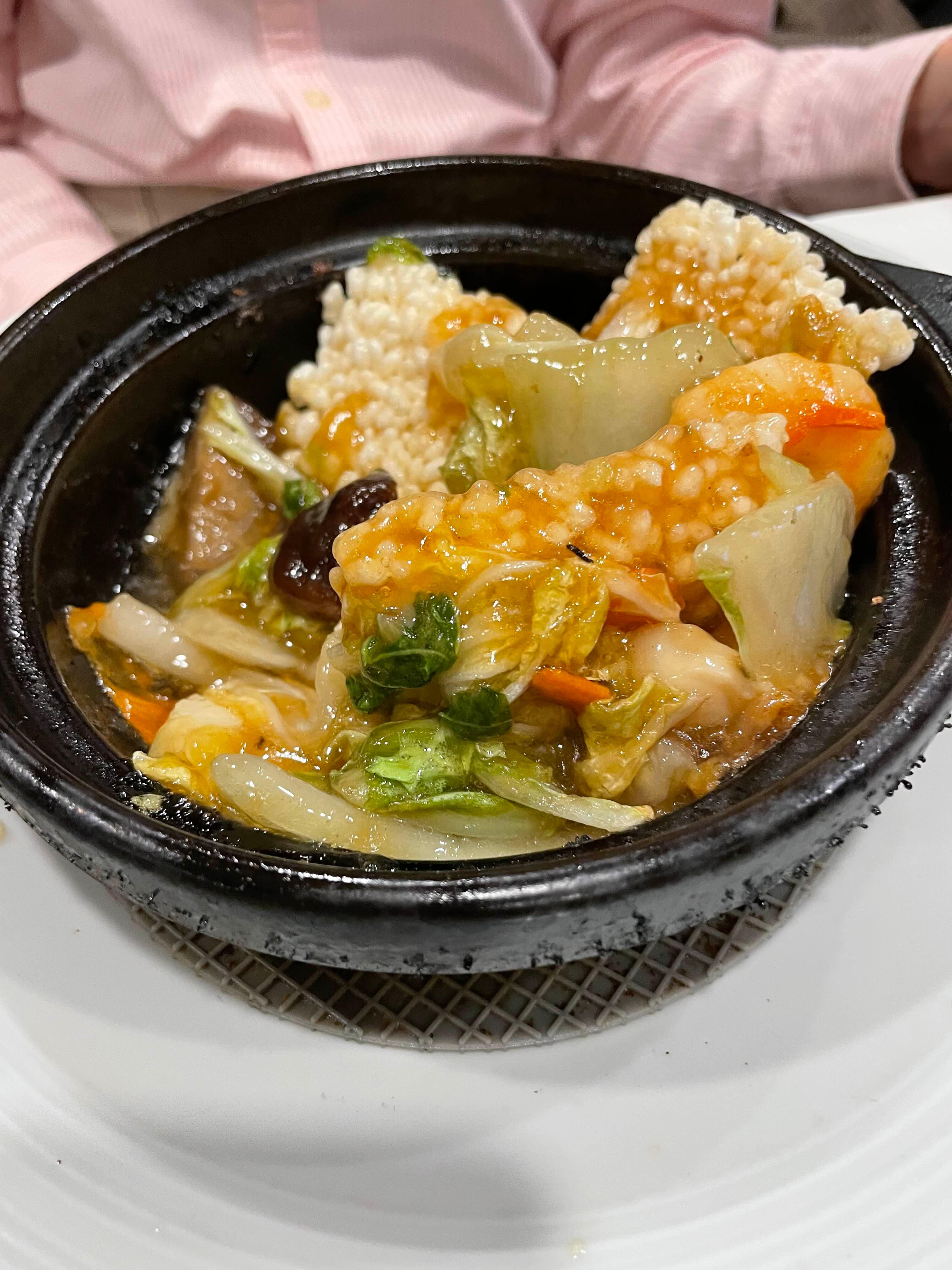 누룽지가 매우 바삭하고 그 자리에서 해물을 부어주면서 지글지글 소리가 나서 보는 재미가 있었다