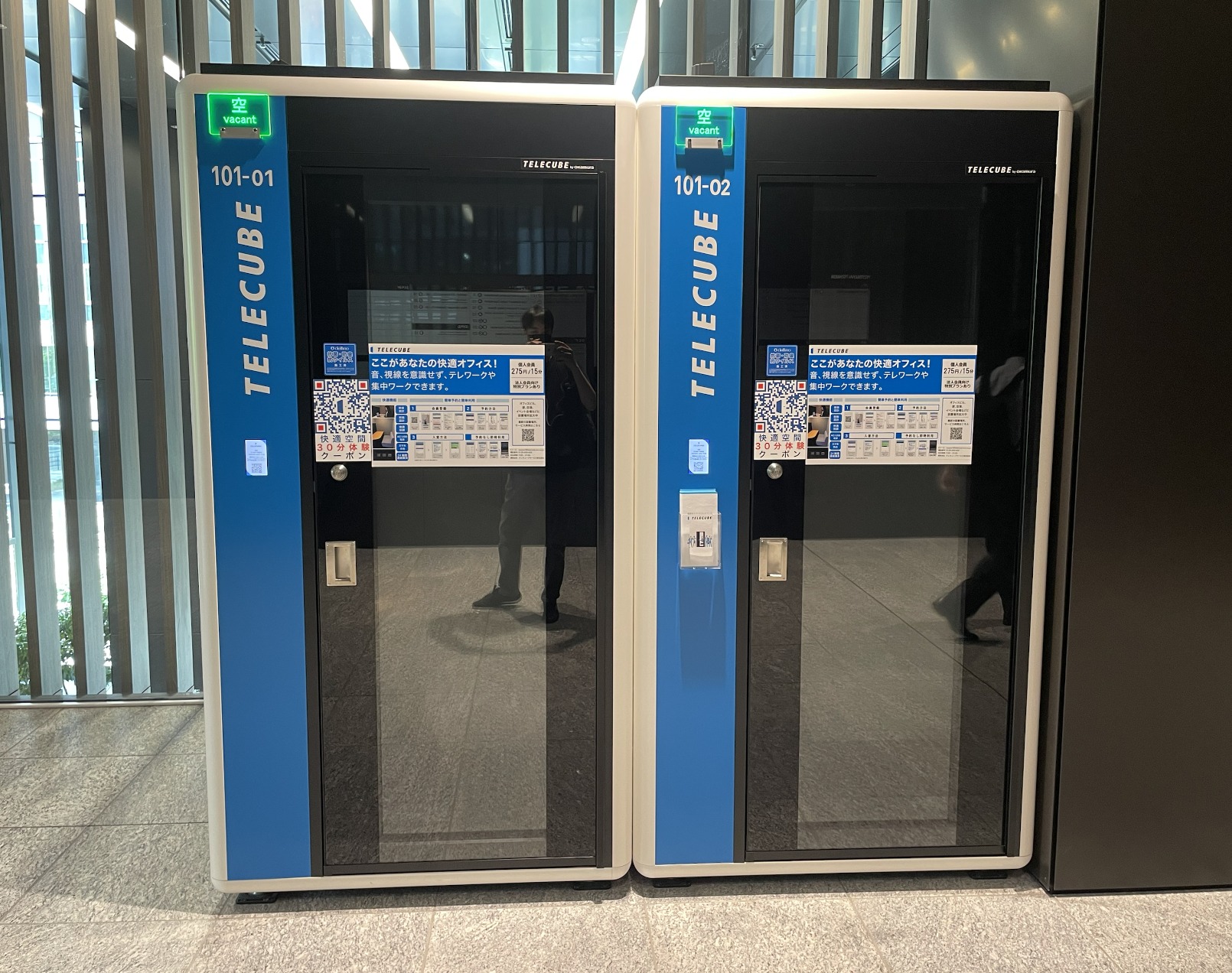 【15分単位利用】オフィスビル・駅・商業施設等に設置|WEB会議・WEB面接・テレワークに最適|電源・WiFi完備|領収書発行で経費精算も簡単|スマホで予約・解錠|東京・大阪・名古屋を中