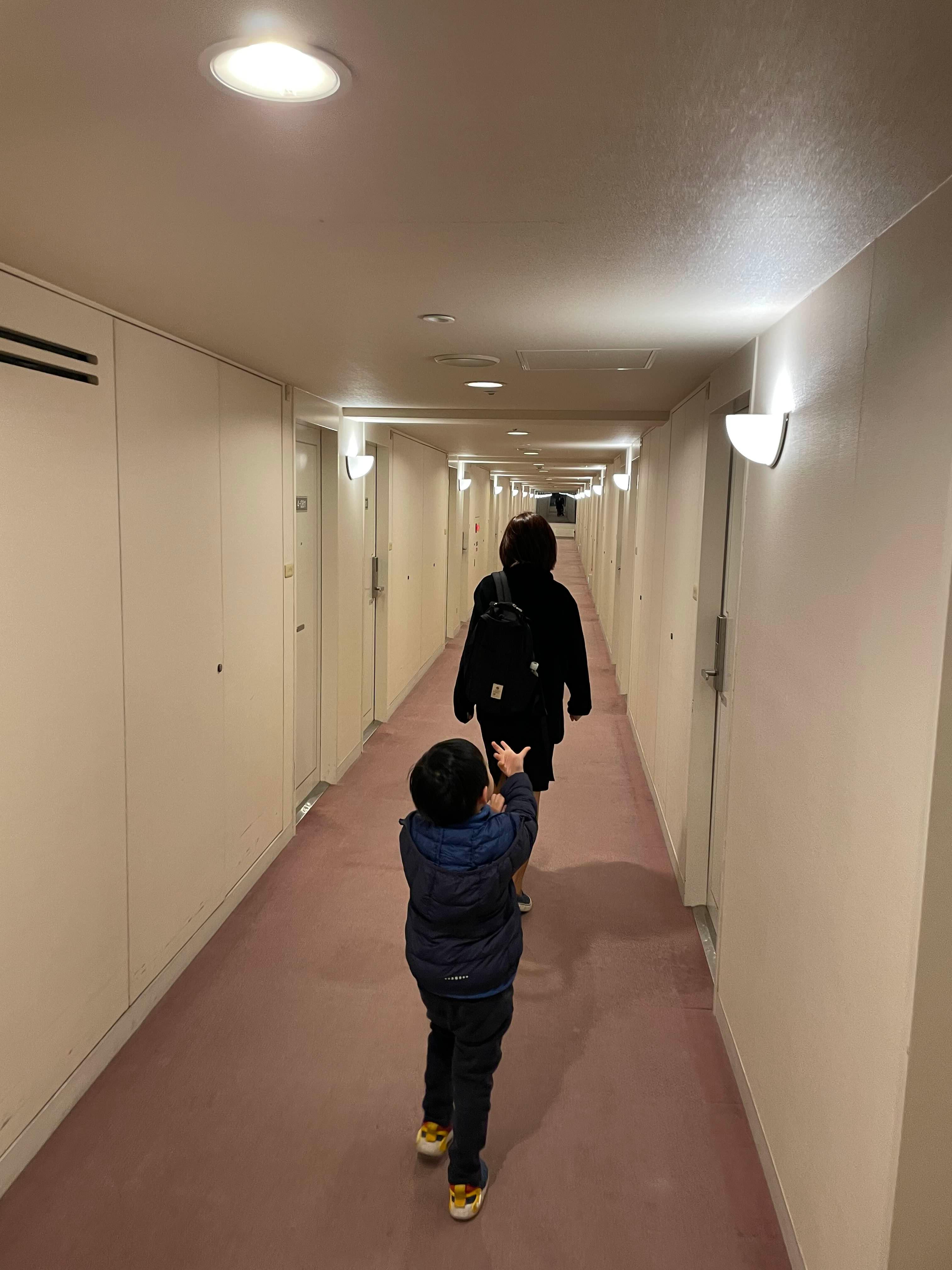 호텔 복도는 약간 촌스러운 핑크