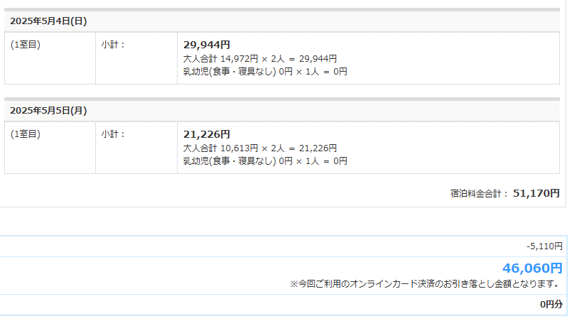 5/4는 인당 1.5만엔, 5/5는 인당 1만엔 수준으로 도합 4.6만엔 약 50만원 언더로 다녀왔다 조식 포함