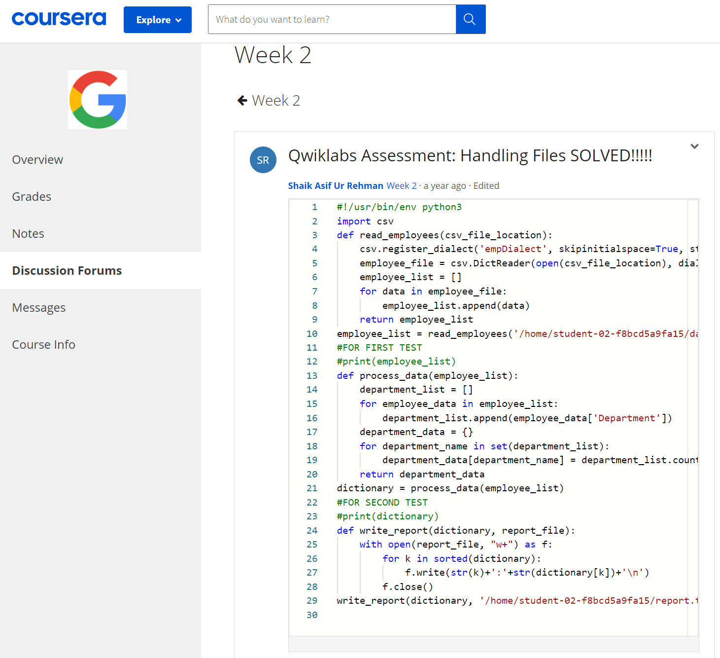 친절한 친구들이 정답을 모두 Discussion Forum에 올려둬서