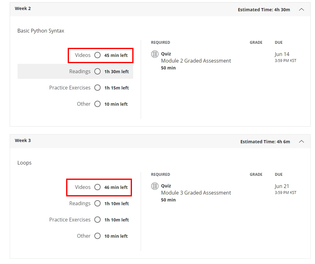 즉, 절대적인 들어야하는 수업 분량이 적지는 않으나, 클립을 쪼갬으로써 부담을 확 줄이는 마법을..