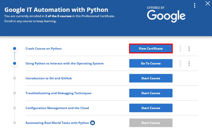 각 코스를 마칠 때마다 수료증 같은게 나오긴 한다..