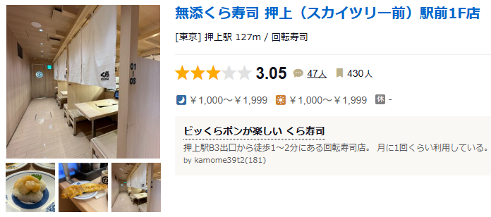 - 스카이트리와 쇼핑몰 근처에 위치해 접근성이 뛰어나며, 무첨가 재료로 만든 신선한 초밥을 합리적 가격에 맛볼 수 있습니다.
