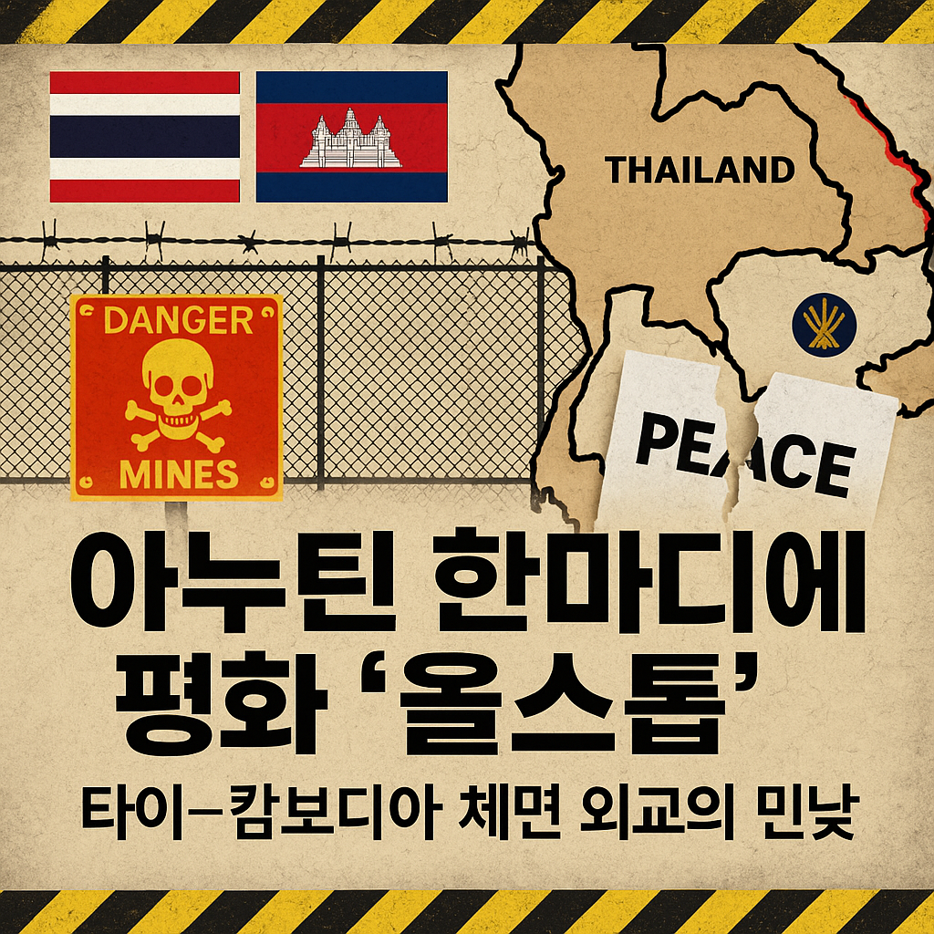 갑자기 질문입니다. 혹시 "도둑의 부하가 두목을 배신한 이야기"를 아시나요? 타이와 캄보디아의 국경 분쟁이 정확히 그것입니다. 10월 말 미국의 트럼프 대통령까지 직접 중재하며 체결한 평화협정이 고작 2주 만에 "이행 중단"이 되어버렸거든요. 그 범인은 지뢰가 아니라, 타이 아누틴 총리의 한 마디입니다.