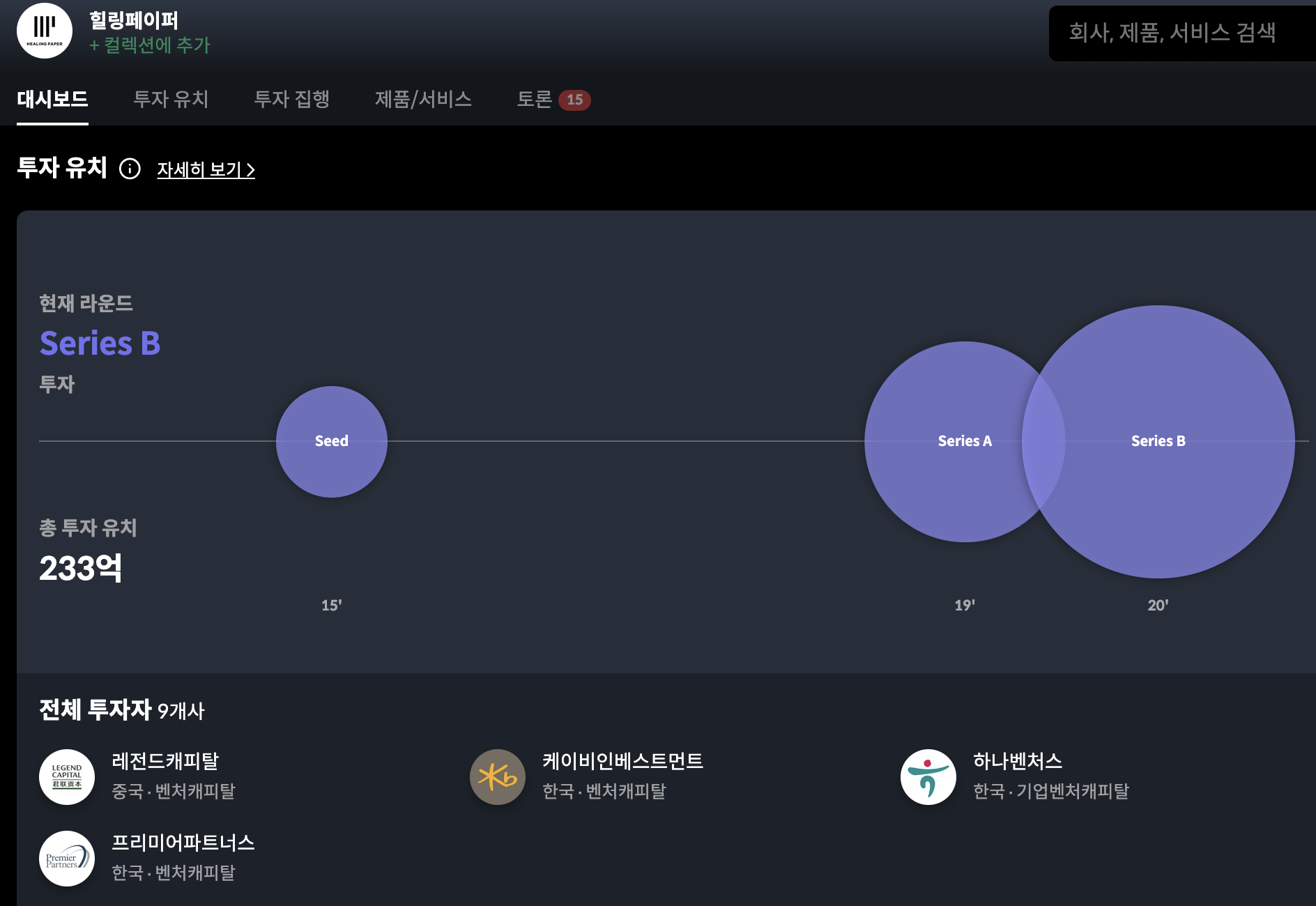사명은 힐링페이퍼로 현재 시리즈B까지 투자가 된 것 같다.
