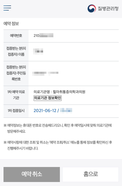 2021년 6월 1일 0시 오픈, 6월 12일 접종 예약