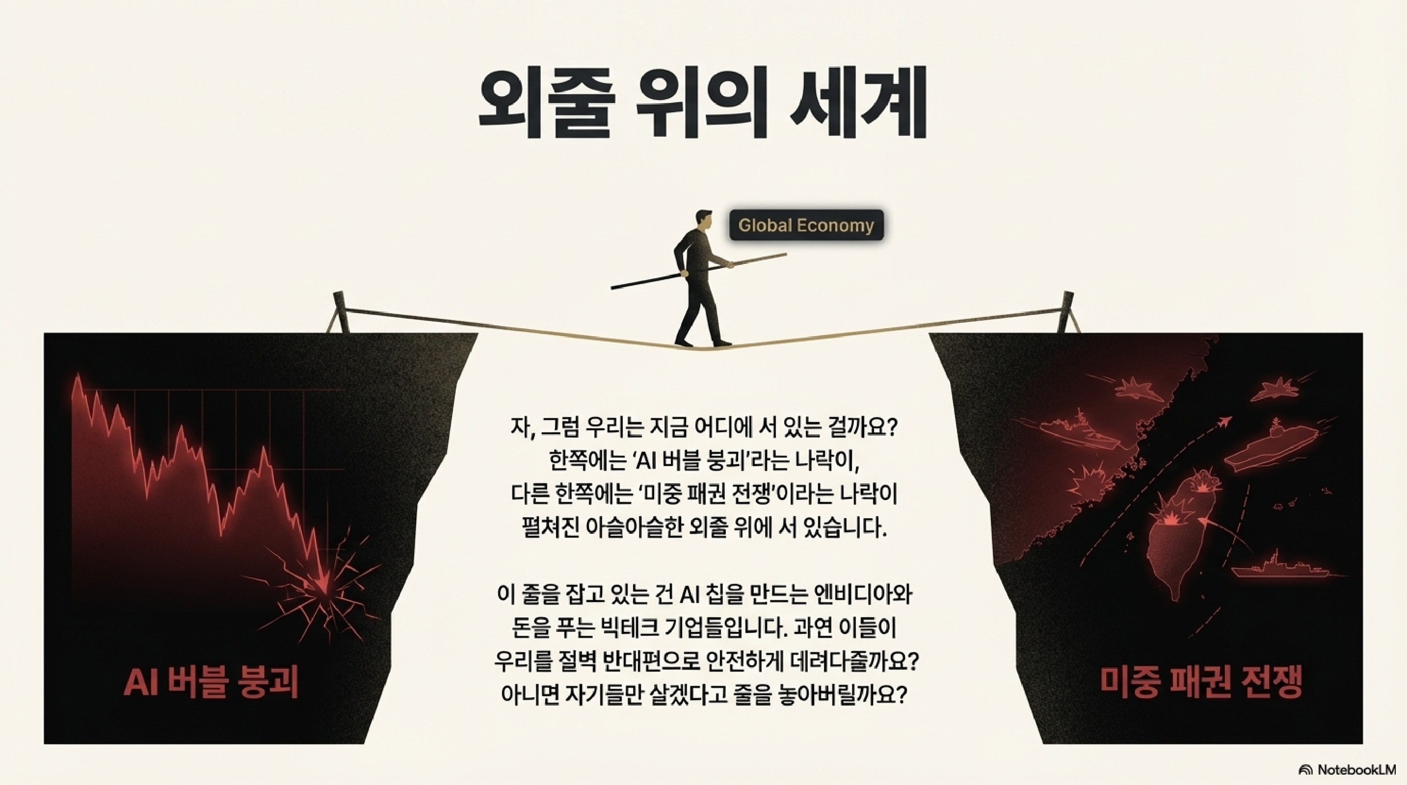 자, 그럼 바로 본론으로 들어가 볼까요? AI가 지금 미국 경제를 살리고 있는 구원투수일까요, 아니면 모든 것을 한 방에 무너뜨릴 마지막 거품일까요? 오늘 저와 함께 그 실체를 파헤쳐 보시죠.