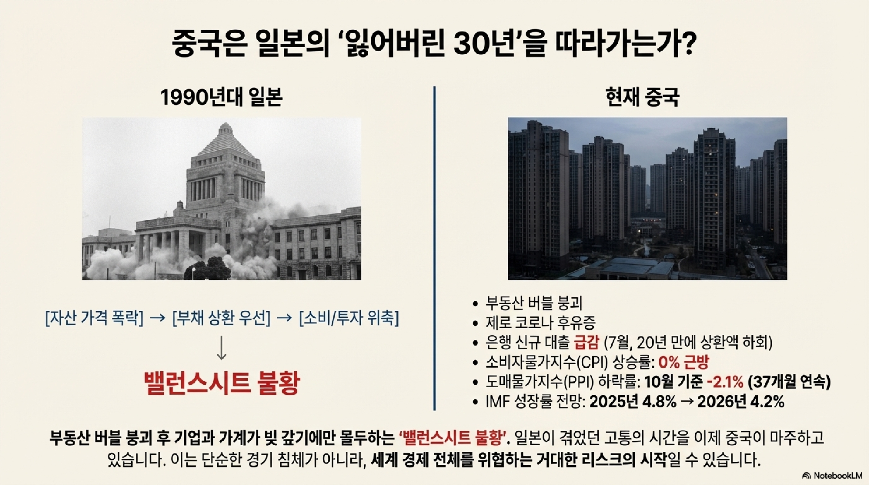 이 현상이 품고 있는 '역사적 아이러니'는 소름이 돋을 정도입니다. 중국이 과거 일본이 겪었던 '잃어버린 10년'의 전철을 그대로 밟고 있다는 강력한 신호이기 때문입니다. 이는 세계 경제에도 큰 위험입니다. 내수 시장이 죽어버린 중국이 팔지 못하고 남는 제품들을 해외에 헐값으로 밀어내기 시작하면, 전 세계적인 무역 마찰을 불러일으킬 수밖에 없습니다.