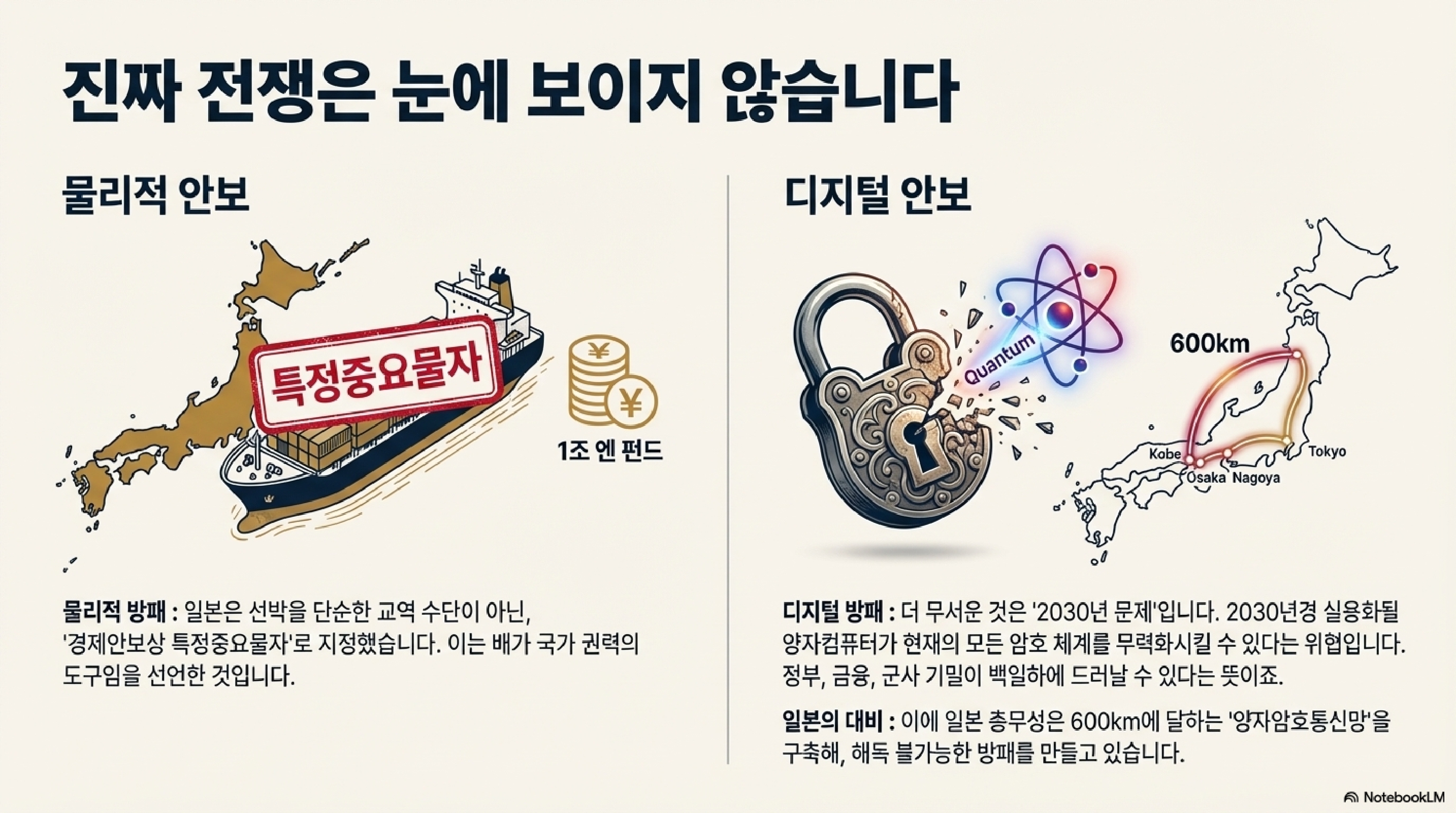여기에 일본 정부가 화룡점정을 찍었습니다. 선체를 '경제안보추진법 상 특정중요물자'로 지정하고, 앞으로 10년간 관민 합동으로 무려 1조 엔(약 9조 원) 규모의 투자를 단행하기로 한 것입니다. 말 그대로 국가 총동원 체제, '올 재팬' 연합이 탄생한 셈입니다.