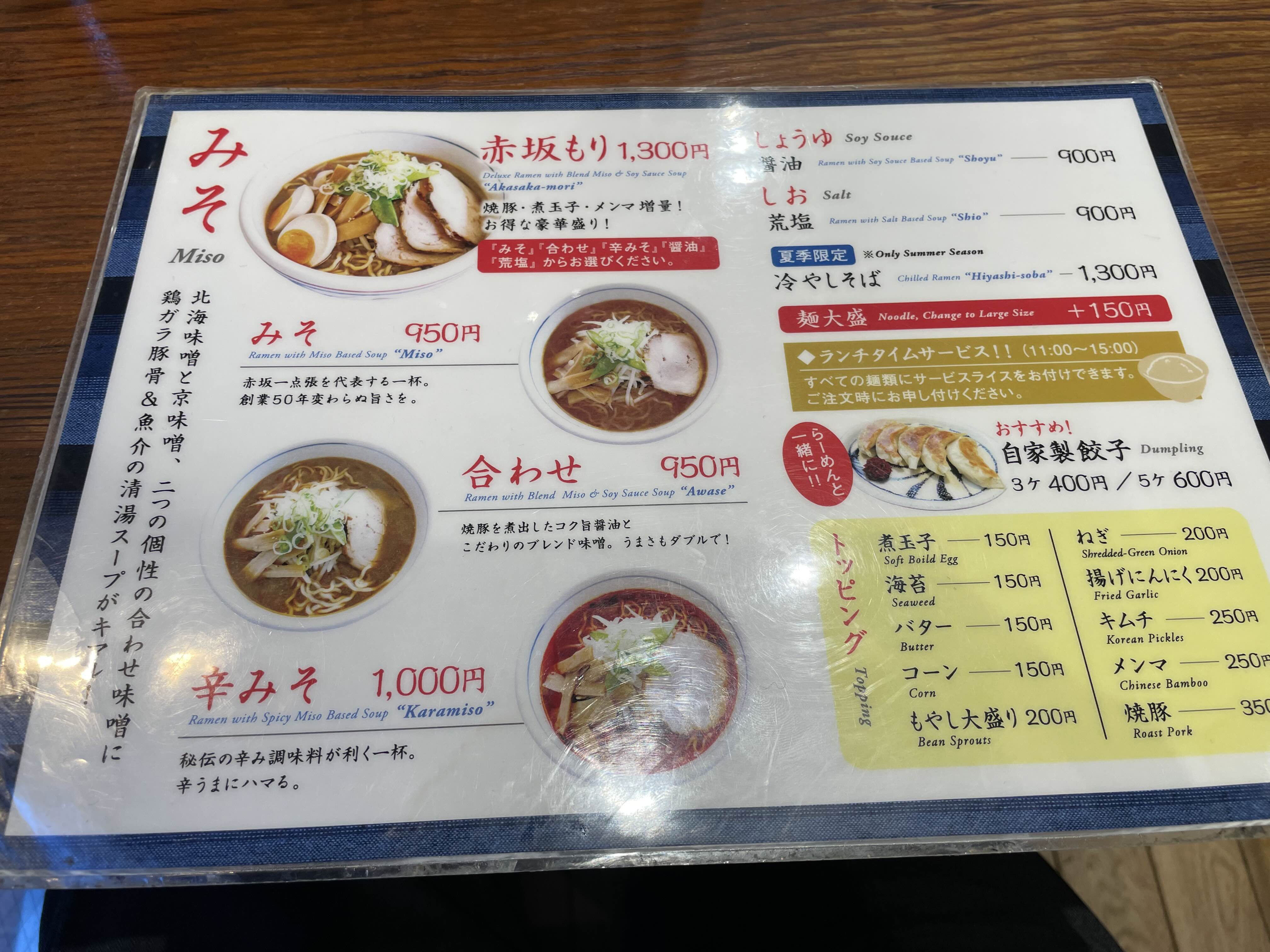 라멘 이름부터가 아카사카모리 1,300엔