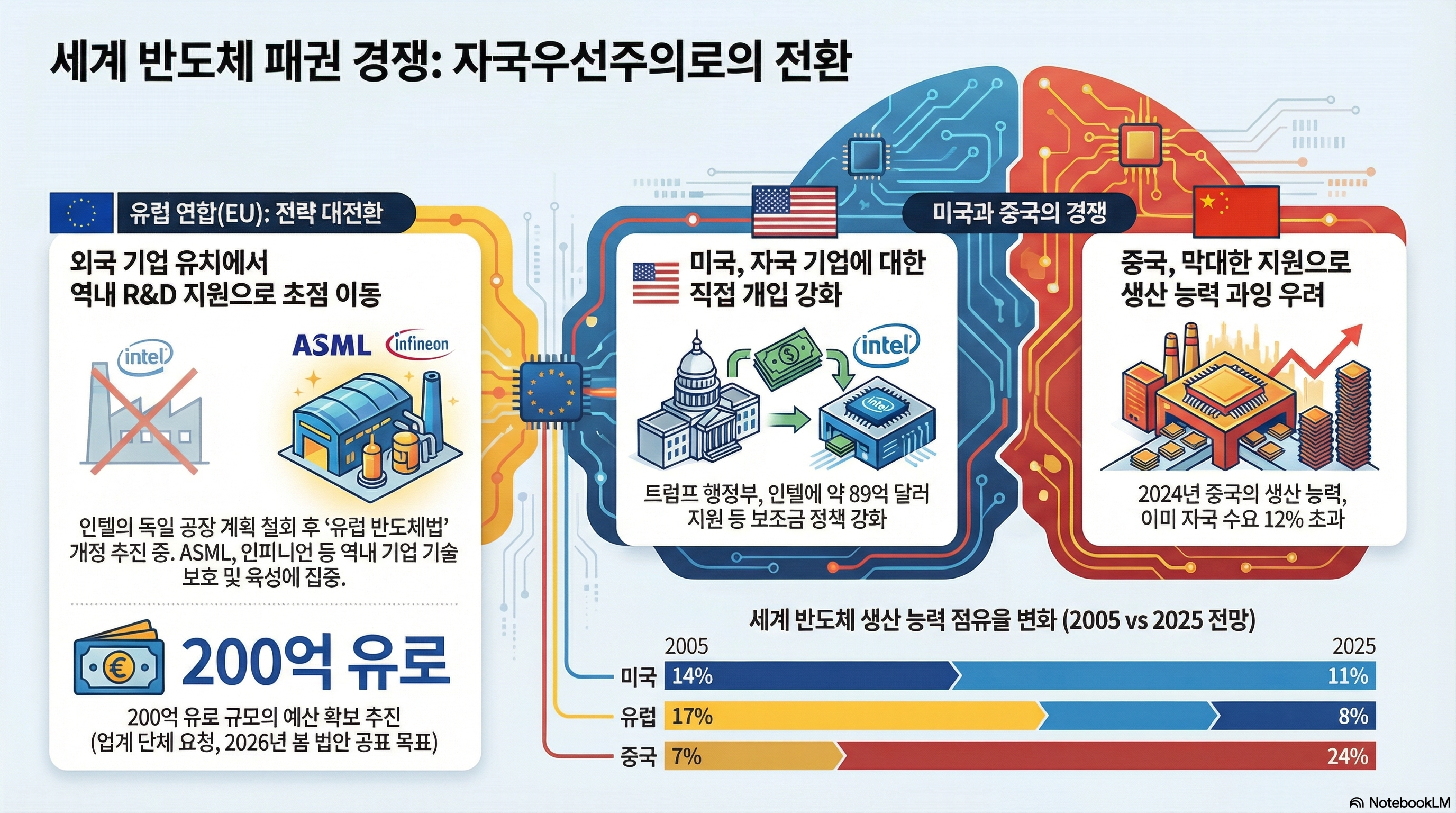 '새로운 석유'라 불리는 반도체. 이 전략 자산을 확보하기 위해 각국 정부가 납세자의 돈을 누가 더 빨리, 더 비효율적으로 태워버리는지 경쟁하는 '글로벌 보조금 올림픽'이 한창입니다. 모두가 '우리 집 앞마당에 공장을 지어야 한다'며 자국 공급망 확보에 사활을 걸고 있는데요, 이 난장판 속에서 최근 의미심장한 전략 변화들이 감지되고 있습니다.