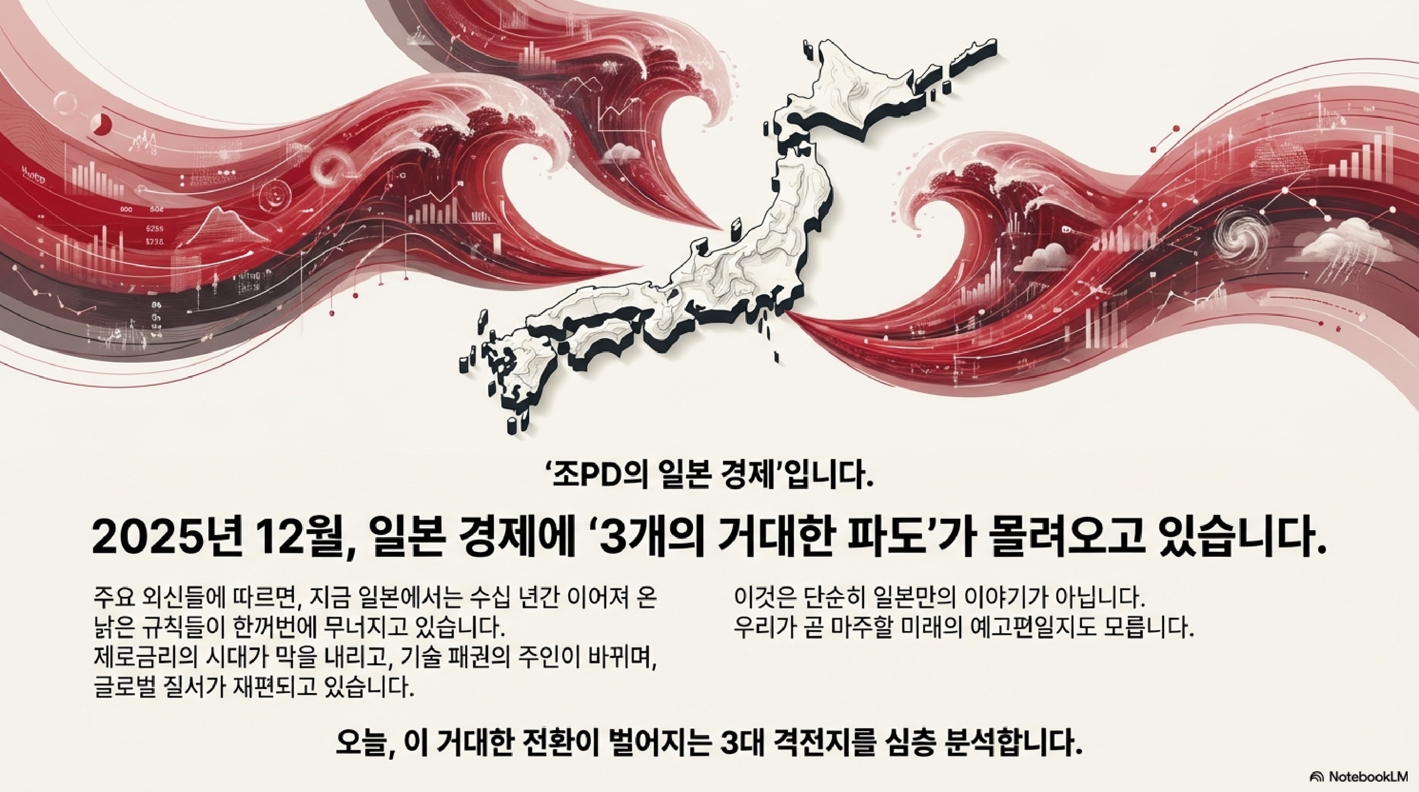 네, '조PD의 일본 경제'입니다. 오늘 시청자들께서 주목하셔야 할 굵직한 경제 이야기는 세 가지입니다. 첫째, 그야말로 조조, 유비, 손권이 따로 없는 글로벌 반도체 삼국지. 수조 원이 오가는 보조금 전쟁의 판이 어떻게 뒤집히고 있는지 파헤쳐 봅니다. 둘째, 30년간 깊은 잠에 빠져 있던 일본은행이 드디어 금리 인상이라는 알람을 맞추기 시작했습니다. 우에다 총재의 폭탄 발언이 시장에 어떤 충격과 공포를 안겼는지 심층 분석합니다. 마지막으로, AI 주식 시장에서 벌어진 드라마틱한 왕좌의 게임. 절대 강자 엔비디아의 시대가 저물고 있다는 신호가 포착됐습니다. 그저 그런 뉴스 브리핑이 아닙니다. 행간에 숨겨진 진짜 의미와 돈의 흐름을 재치와 유머로 풀어드리겠습니다. 시작합니다.