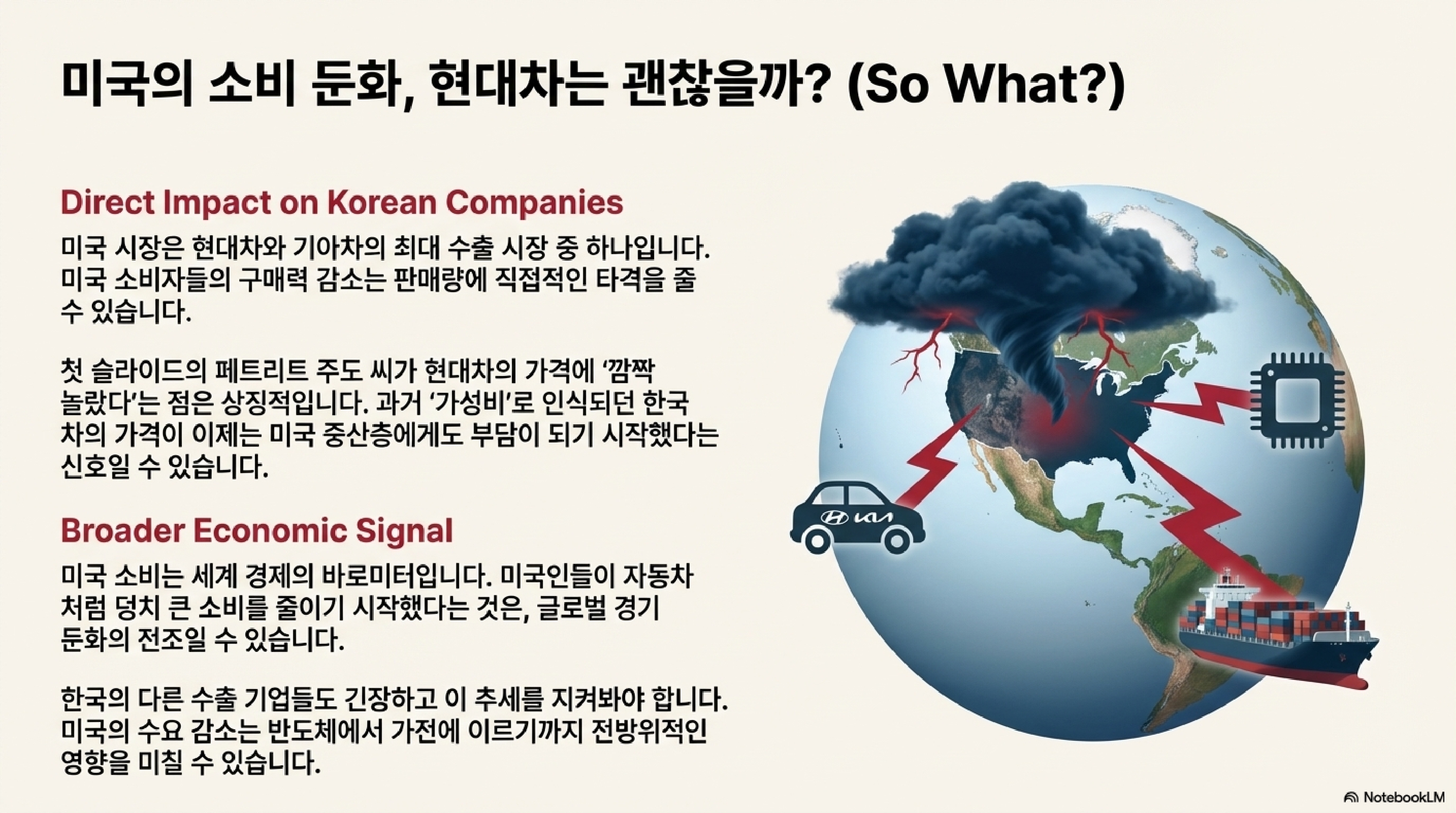 이 변화는 단순히 자동차가 안 팔린다는 뉴스를 넘어, 미국의 평범한 소비자들이 겪고 있는 인플레이션, 관세, 고용 시장의 압박을 종합적으로 보여주는 핵심 지표입니다. 당연히, 미국 시장에 자동차를 수출하는 우리 기업들에게도 엄청난 영향을 미칠 수밖에 없는 중요한 변화입니다.